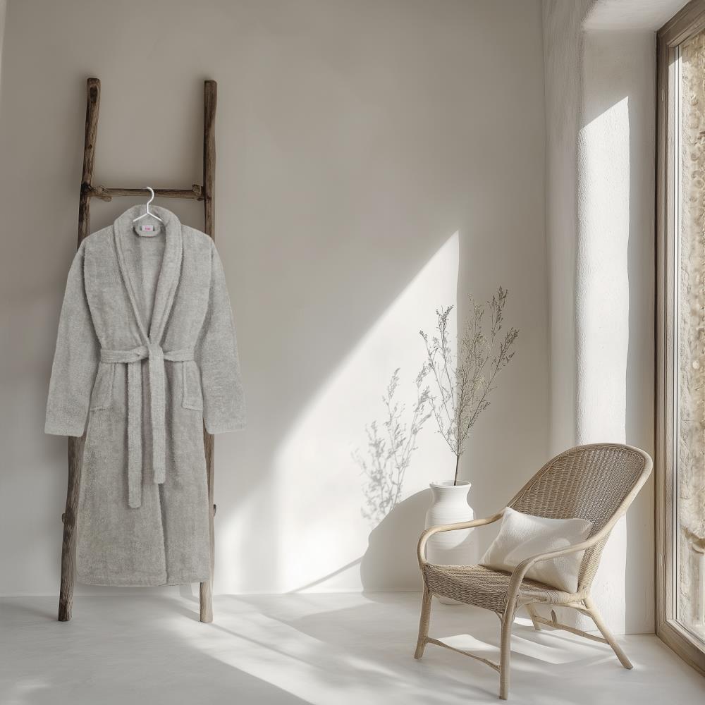 Dit betreft één badjas in de maat XS/S. De badjas valt ruim. De badjas is Oeko-Tex gecertificeerd (Oeko-Tex standaard 100): vrij van schadelijke stoffen en huidvriendelijk.