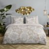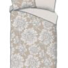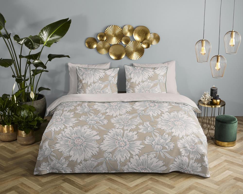 Satijnen dekbedovertrek Ancona van Descanso. Dit dekbedovertrek met bloemen, in de kleur zand, is gemaakt van 100% katoen-satijn. Descanso dekbedovertrek is luxe, stijlvol en elegant. De achterkant heeft een bijpassende uni kleur.