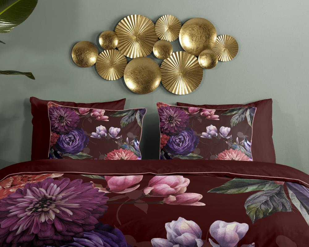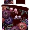 Satijnen dekbedovertrek Bloomie van Descanso. Dit dekbedovertrek met bloemen, in de kleur bordeaux, is gemaakt van 100% katoen-satijn. Descanso dekbedovertrek is luxe, stijlvol en elegant. De achterkant heeft een bijpassende uni kleur.