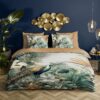 Satijnen dekbedovertrek Dana van Descanso. Dit dekbedovertrek met bladeren en vogels, in de kleur multi, is gemaakt van 100% katoen-satijn. Descanso dekbedovertrek is luxe, stijlvol en elegant. De achterkant heeft een bijpassende uni kleur.