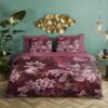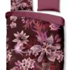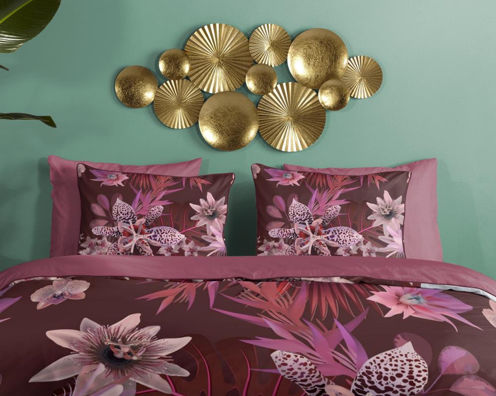 Satijnen dekbedovertrek Farze van Descanso. Dit dekbedovertrek met bloemen, in de kleur bordeaux, is gemaakt van 100% katoen-satijn. Descanso dekbedovertrek is luxe, stijlvol en elegant. De achterkant heeft een bijpassende uni kleur.