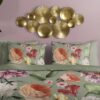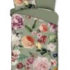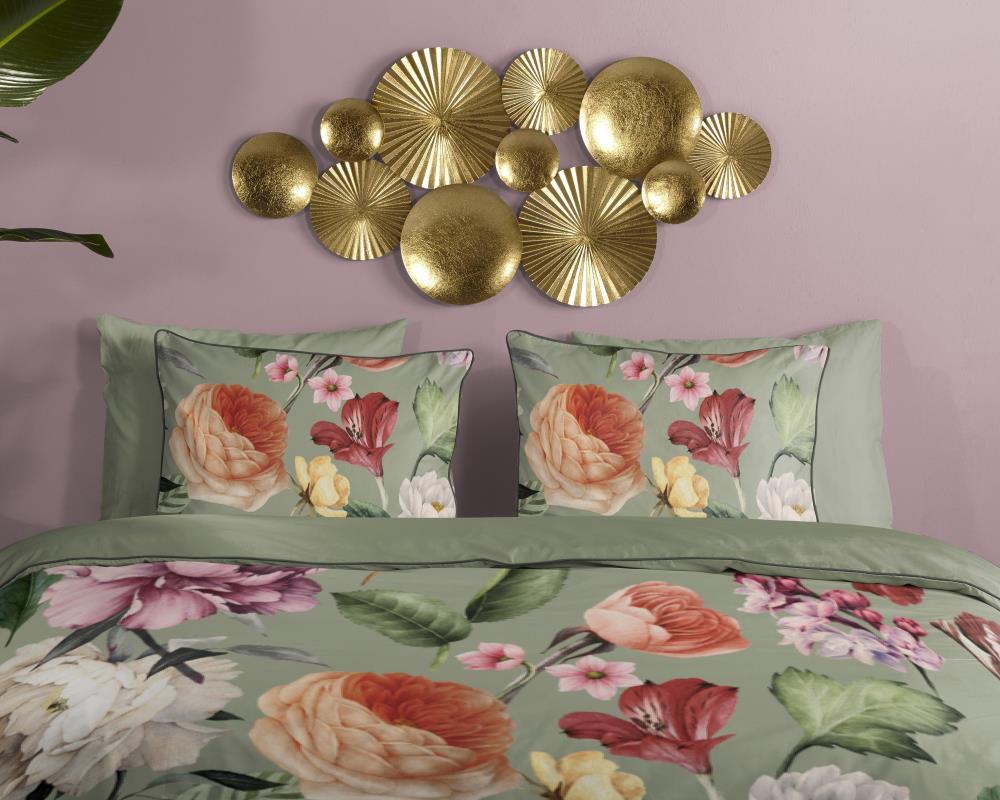 Satijnen dekbedovertrek Fiori van Descanso. Dit dekbedovertrek met bloemen, in de kleur groen, is gemaakt van 100% katoen-satijn. Descanso dekbedovertrek is luxe, stijlvol en elegant. De achterkant heeft een bijpassende uni kleur.