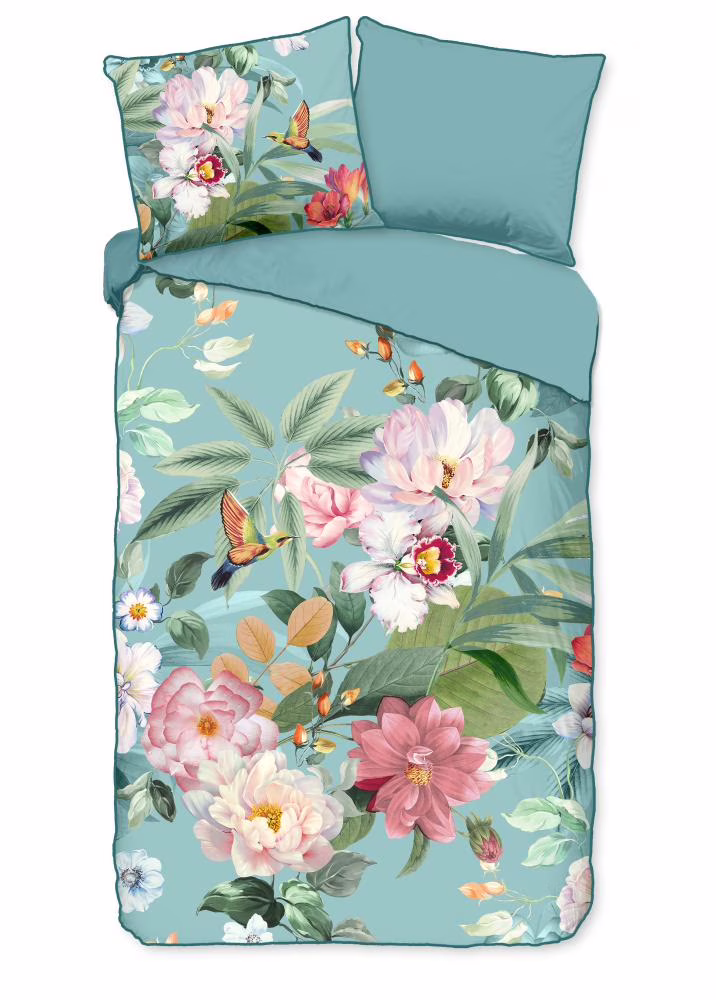 Satijnen dekbedovertrek Fungi van Descanso. Dit dekbedovertrek met bloemen, in de kleur multi, is gemaakt van 100% katoen-satijn. Descanso dekbedovertrek is luxe, stijlvol en elegant. De achterkant heeft een bijpassende uni kleur.