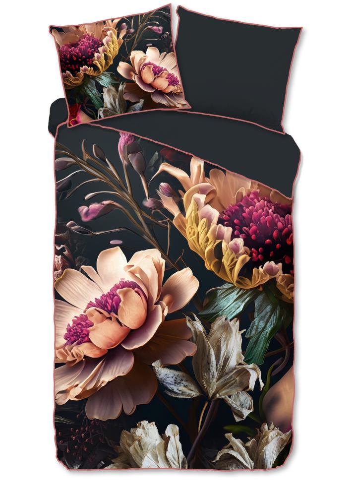 Satijnen dekbedovertrek Straizo van Descanso. Dit dekbedovertrek met Bloemen, in de kleur antraciet, is gemaakt van 100% katoen-satijn. Descanso dekbedovertrek is luxe, stijlvol en elegant. De achterkant heeft een bijpassende uni kleur.
