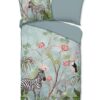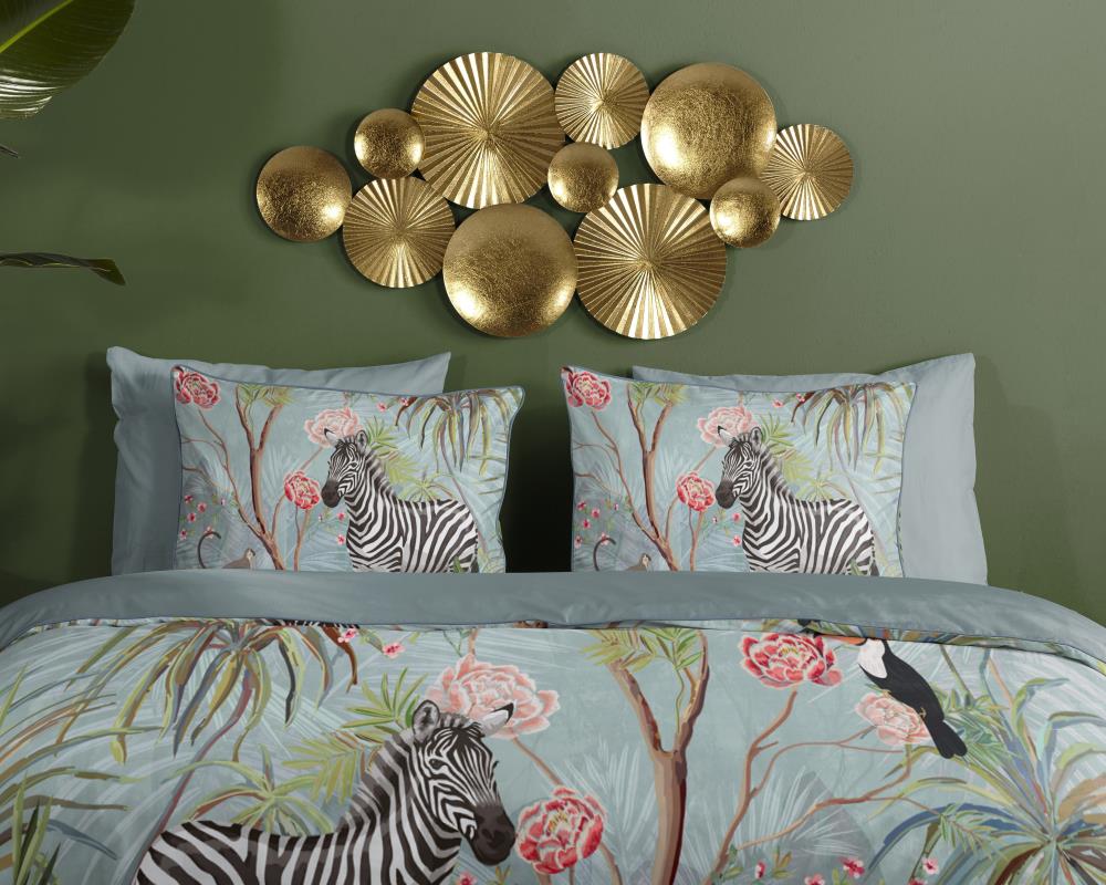 Satijnen dekbedovertrek Yasmin van Descanso. Dit dekbedovertrek met jungle print, in de kleur aqua, is gemaakt van 100% katoen-satijn. Descanso dekbedovertrek is luxe, stijlvol en elegant. De achterkant heeft een bijpassende uni kleur.