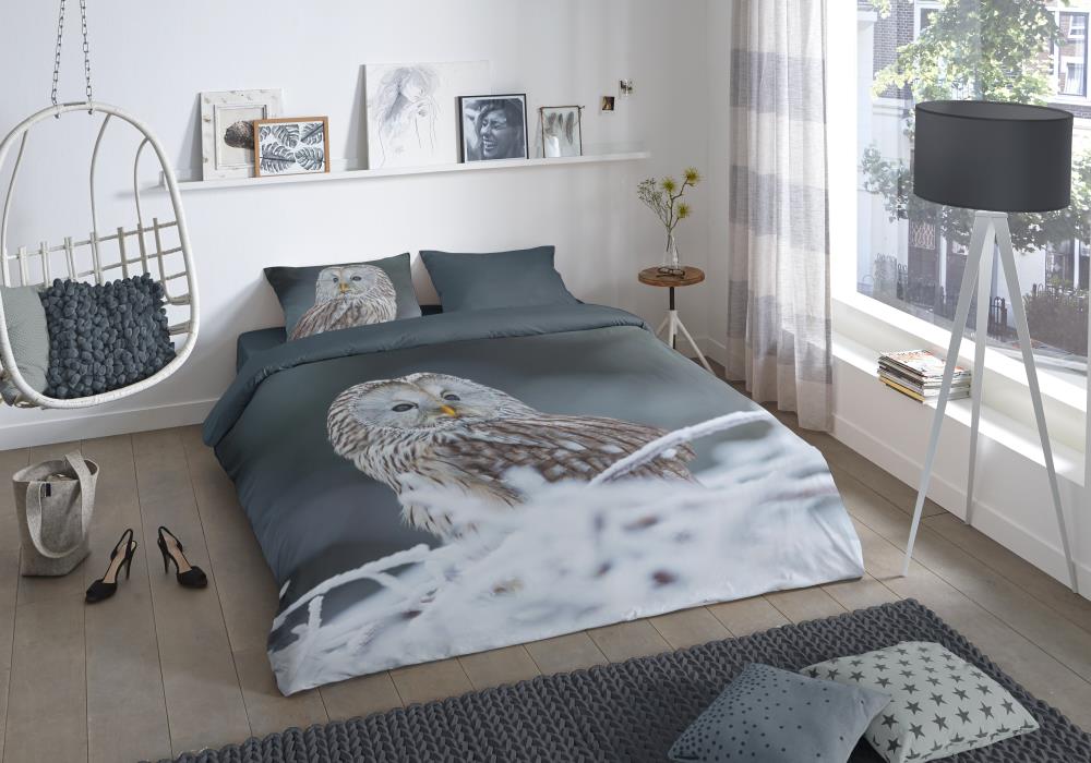 Dekbedovertrek Bennie van Good Morning met uil, in de kleur grijs. Dit is gemaakt van 100% katoen. De kwaliteit is ademend, vochtabsorberend en voelt zacht en soepel aan. Dit mooie dekbedovertrek fleurt iedere slaapkamer op en is geschikt voor elk jaargetijde. Het katoenen dekbedovertrek is heerlijk koel in de zomer en geeft warmte in de winter.