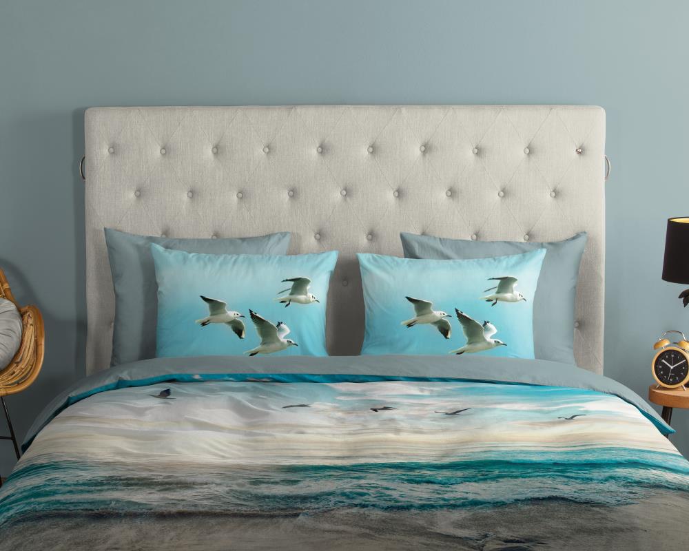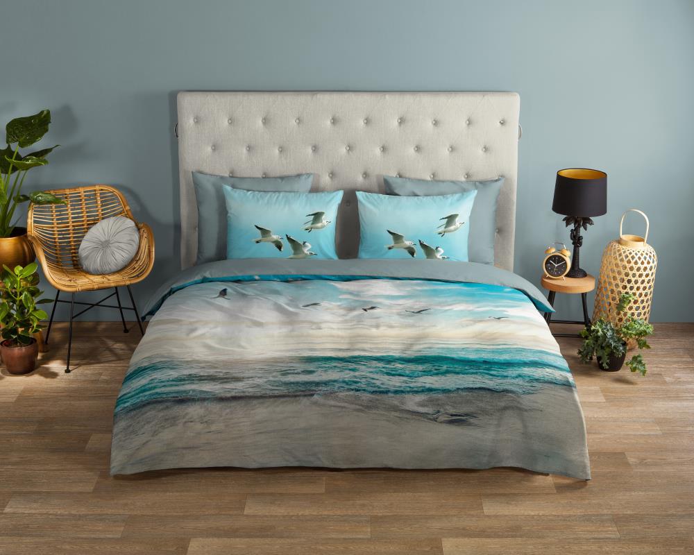 Dekbedovertrek Brisa van Good Morning met strand/ zee, in de kleur aqua. Dit is gemaakt van 100% katoen. De kwaliteit is ademend, vochtabsorberend en voelt zacht en soepel aan. Dit mooie dekbedovertrek fleurt iedere slaapkamer op en is geschikt voor elk jaargetijde. Het katoenen dekbedovertrek is heerlijk koel in de zomer en geeft warmte in de winter.