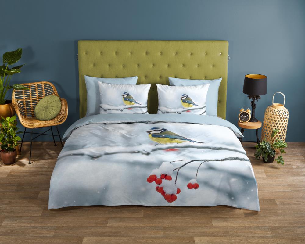 Dekbedovertrek Crisp van Good Morning met pimpelmees in de sneeuw, in de kleur multi. Dit is gemaakt van 100% katoen. De kwaliteit is ademend, vochtabsorberend en voelt zacht en soepel aan. Dit mooie dekbedovertrek fleurt iedere slaapkamer op en is geschikt voor elk jaargetijde. Het katoenen dekbedovertrek is heerlijk koel in de zomer en geeft warmte in de winter.