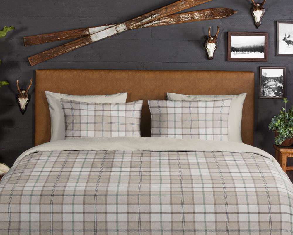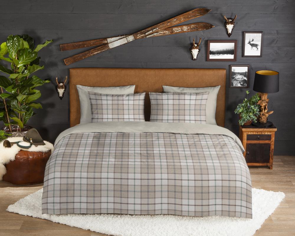 Flanellen dekbedovertrek Bernardus van Good Morning, in de kleur zand, met een print van eengeruite print. Het dekbedovertrek is gemaakt van 100% katoen/flanel dat is licht geruwd, waardoor een fluweelzacht laagje ontstaat dat heerlijk warm aanvoelt -perfect voor koude nachten.