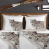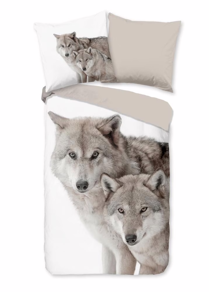 Flanellen dekbedovertrek Fera van Good Morning, in de kleur zand, met een een print van wolven in de sneeuw. Het dekbedovertrek is gemaakt van 100% katoen/flanel dat licht is geruwd, waardoor een fluweelzacht laagje onstaat dat heerlijk warm aanvoelt -perfect voor koude nachten.Dit mooie dekbedovertrek zorgt voor een fijne, rustige sfeer in iedere slaapkamer. Flanellen dekbedovertrek zijn bij uitstek geschikt voor de koude wintermaanden.