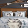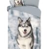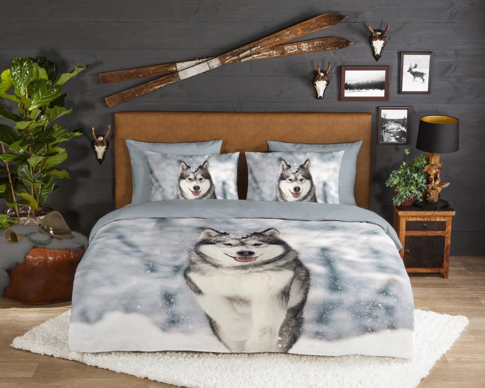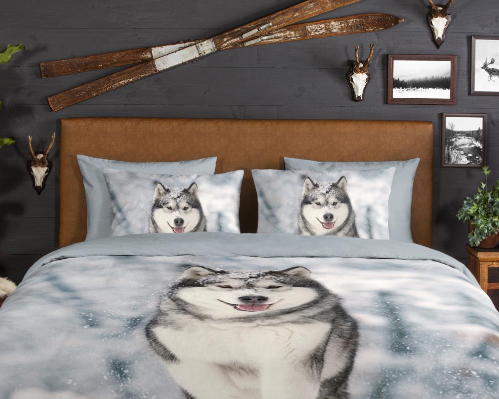 Flanellen dekbedovertrek Husky van Good Morning, in de kleur grijs, met een print van eenhusky hond. Het dekbedovertrek is gemaakt van 100% katoen/flanel dat is licht geruwd, waardoor een fluweelzacht laagje ontstaat dat heerlijk warm aanvoelt -perfect voor koude nachten.