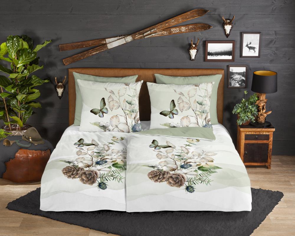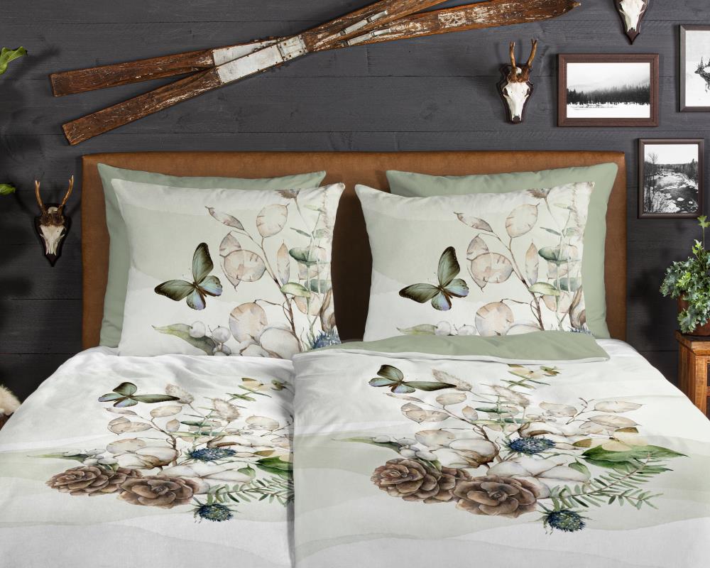 Flanellen dekbedovertrek Marjan van Good Morning, in de kleur groen, met een een print van droogboeket en vlinder. Het dekbedovertrek is gemaakt van 100% katoen/flanel dat licht is geruwd, waardoor een fluweelzacht laagje onstaat dat heerlijk warm aanvoelt -perfect voor koude nachten.Dit mooie dekbedovertrek zorgt voor een fijne, rustige sfeer in iedere slaapkamer. Flanellen dekbedovertrek zijn bij uitstek geschikt voor de koude wintermaanden.