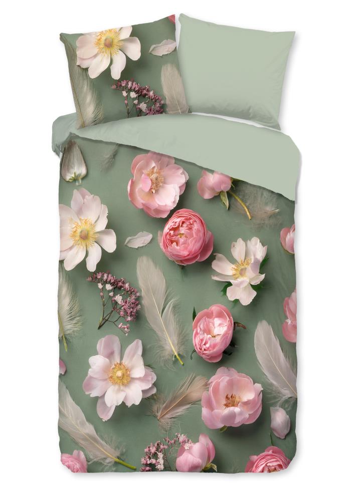 Flanellen dekbedovertrek Senzi van Good Morning, in de kleur groen, met een print van eenBloemen. Het dekbedovertrek is gemaakt van 100% katoen/flanel dat is licht geruwd, waardoor een fluweelzacht laagje ontstaat dat heerlijk warm aanvoelt -perfect voor koude nachten.