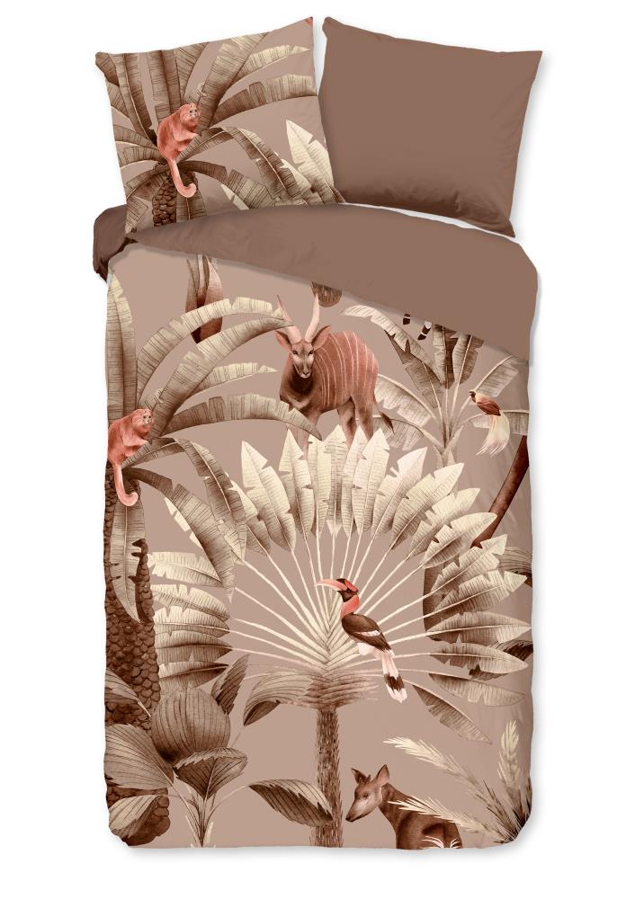 Dekbedovertrek Fuji van Good Morning met bladeren en dieren, in de kleur taupe. Dit is gemaakt van 100% katoen. De kwaliteit is ademend, vochtabsorberend en voelt zacht en soepel aan. Dit mooie dekbedovertrek fleurt iedere slaapkamer op en is geschikt voor elk jaargetijde. Het katoenen dekbedovertrek is heerlijk koel in de zomer en geeft warmte in de winter.