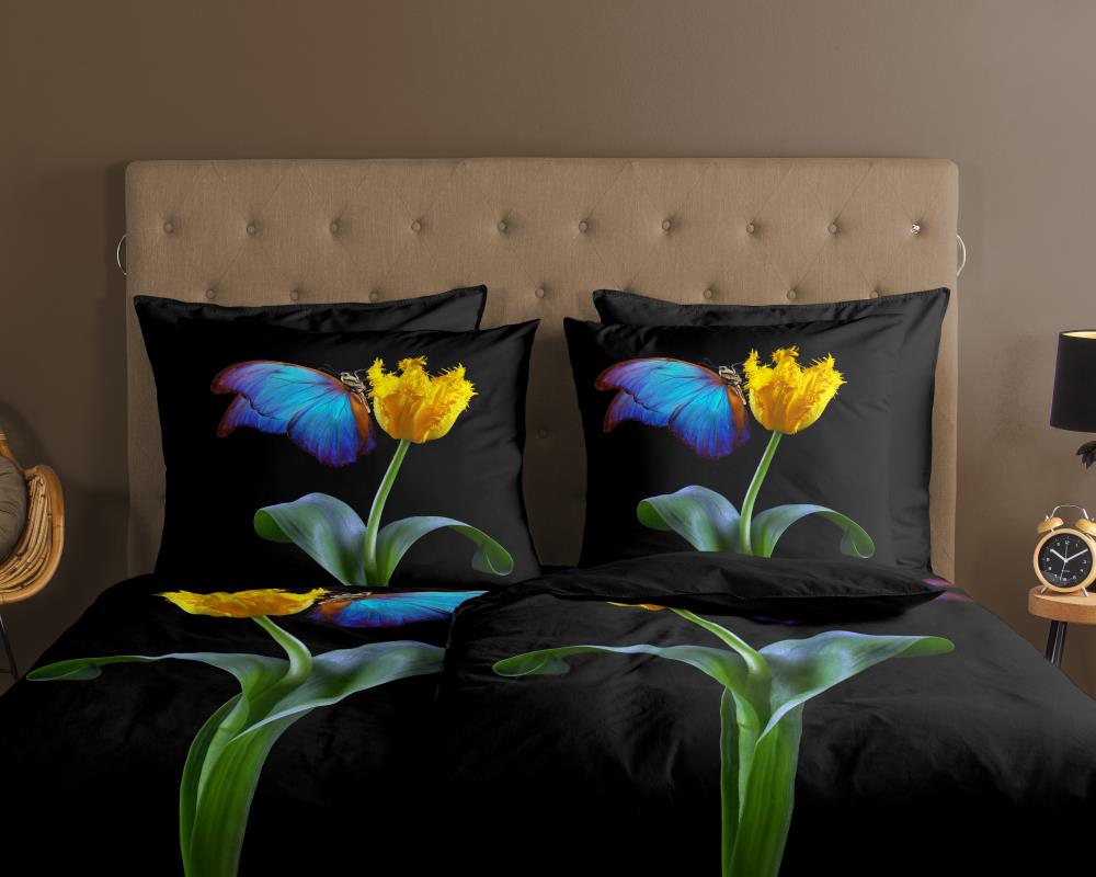 Dekbedovertrek Hamburg van Good Morning met papegaai tulp & vlinder, in de kleur zwart. Dit dekbedovertrek is gemaakt van 100% katoen. De kwaliteit is ademend, vochtabsorberend en voelt zacht en soepel aan. Dit mooie dekbedovertrek fleurt iedere slaapkamer op en is geschikt voor elk jaargetijde. Het katoenen dekbedovertrek is heerlijk koel in de zomer en geeft warmte in de winter.