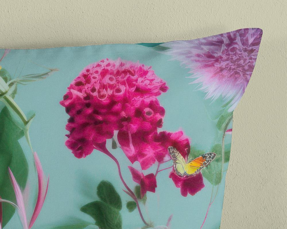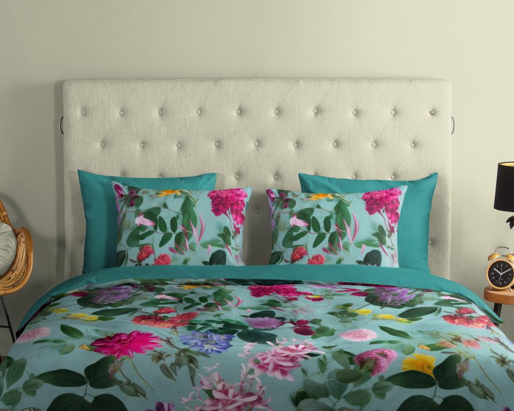 Dekbedovertrek Imma van Good Morning met bloemen, in de kleur aqua. Dit is gemaakt van 100% katoen. De kwaliteit is ademend, vochtabsorberend en voelt zacht en soepel aan. Dit mooie dekbedovertrek fleurt iedere slaapkamer op en is geschikt voor elk jaargetijde. Het katoenen dekbedovertrek is heerlijk koel in de zomer en geeft warmte in de winter.