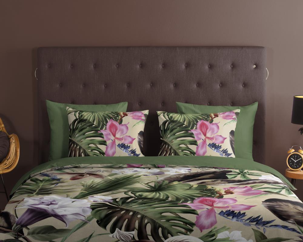Dekbedovertrek Irze van Good Morning met bladeren, in de kleur groen. Dit is gemaakt van 100% katoen. De kwaliteit is ademend, vochtabsorberend en voelt zacht en soepel aan. Dit mooie dekbedovertrek fleurt iedere slaapkamer op en is geschikt voor elk jaargetijde. Het katoenen dekbedovertrek is heerlijk koel in de zomer en geeft warmte in de winter.