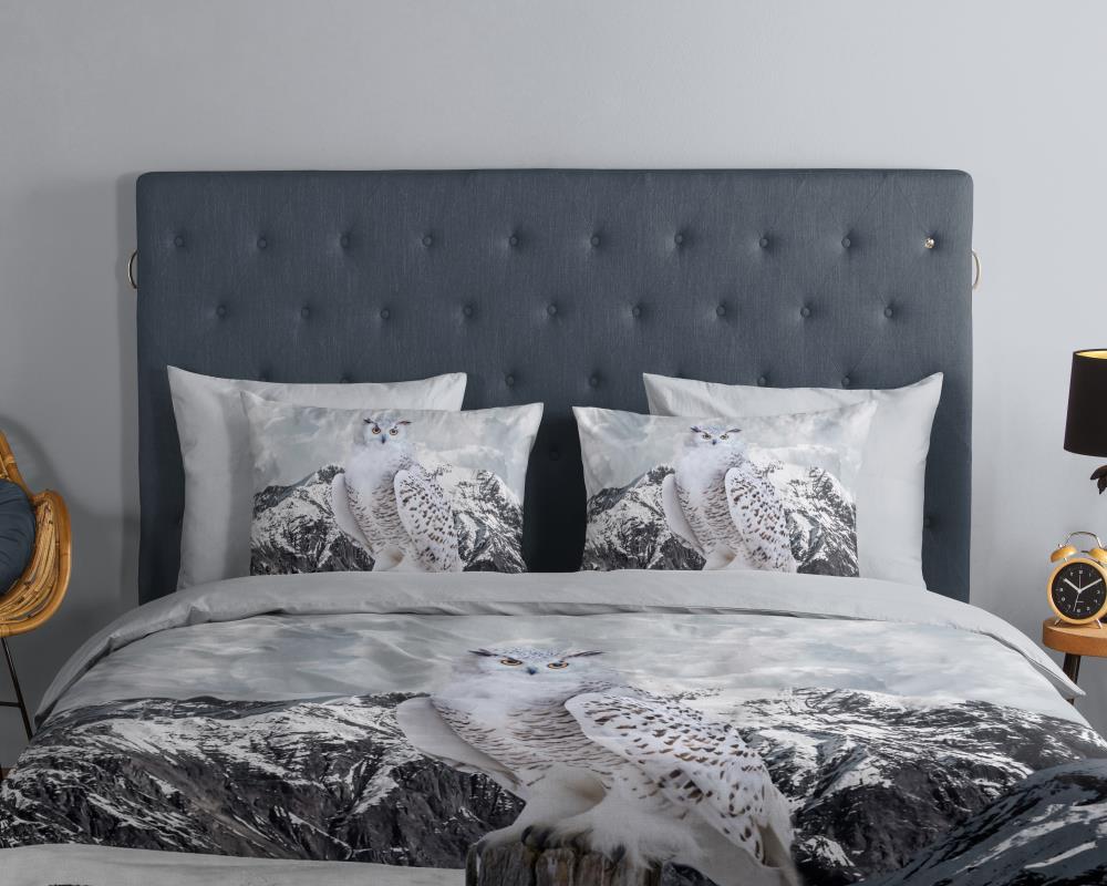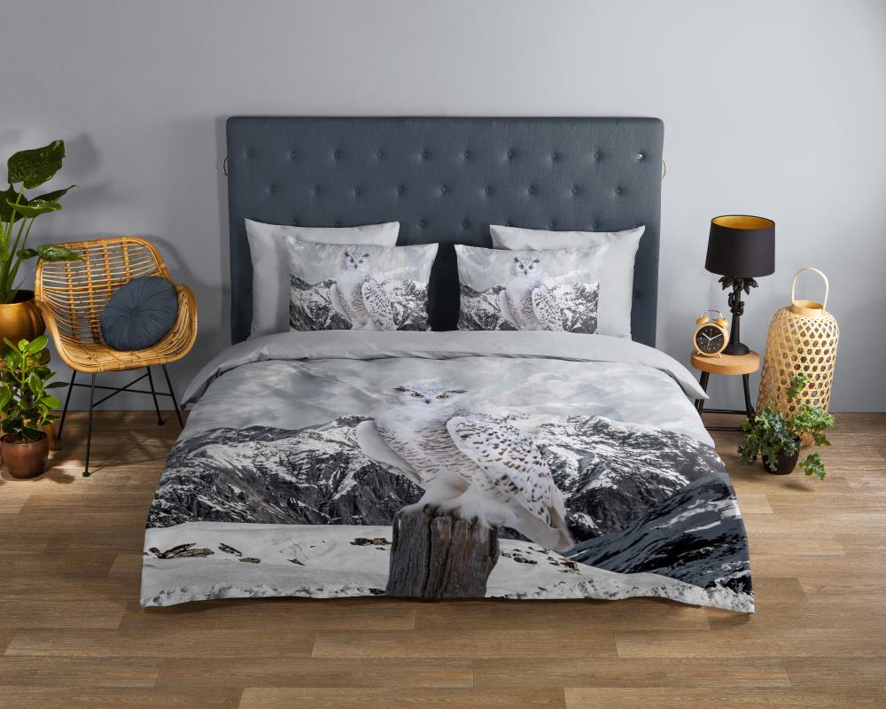 Dekbedovertrek Jacob van Good Morning met sneeuwuil in de sneeuw, in de kleur grijs. Dit is gemaakt van 100% katoen. De kwaliteit is ademend, vochtabsorberend en voelt zacht en soepel aan. Dit mooie dekbedovertrek fleurt iedere slaapkamer op en is geschikt voor elk jaargetijde. Het katoenen dekbedovertrek is heerlijk koel in de zomer en geeft warmte in de winter.