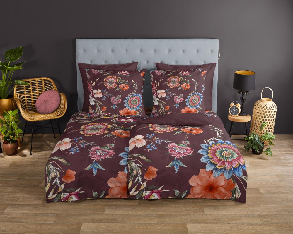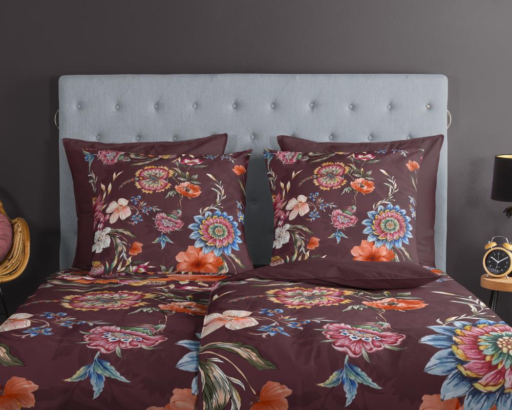 Dekbedovertrek Madelief van Good Morning met bloemen, in de kleur bordeaux. Dit is gemaakt van 100% katoen. De kwaliteit is ademend, vochtabsorberend en voelt zacht en soepel aan. Dit mooie dekbedovertrek fleurt iedere slaapkamer op en is geschikt voor elk jaargetijde. Het katoenen dekbedovertrek is heerlijk koel in de zomer en geeft warmte in de winter.
