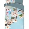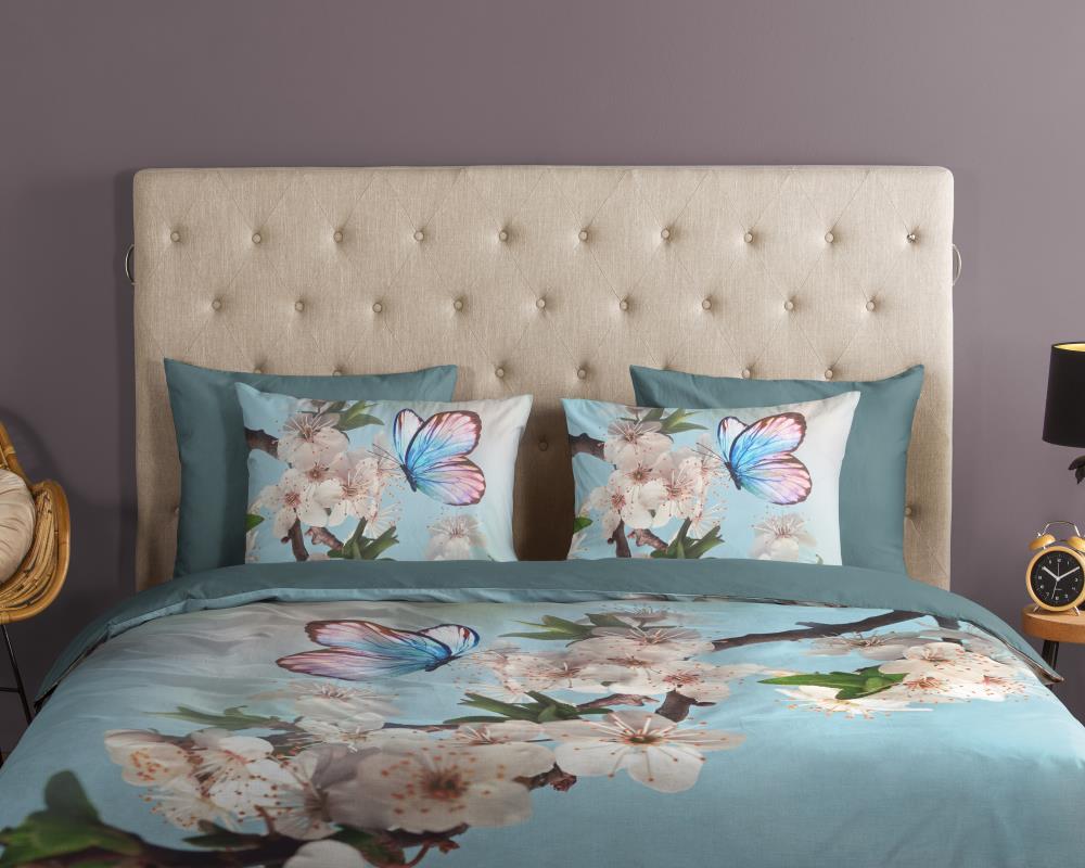 Dekbedovertrek Mayla van Good Morning met Bloemen en vlinders, in de kleur aqua. Dit is gemaakt van 100% katoen. De kwaliteit is ademend, vochtabsorberend en voelt zacht en soepel aan. Dit mooie dekbedovertrek fleurt iedere slaapkamer op en is geschikt voor elk jaargetijde. Het katoenen dekbedovertrek is heerlijk koel in de zomer en geeft warmte in de winter.