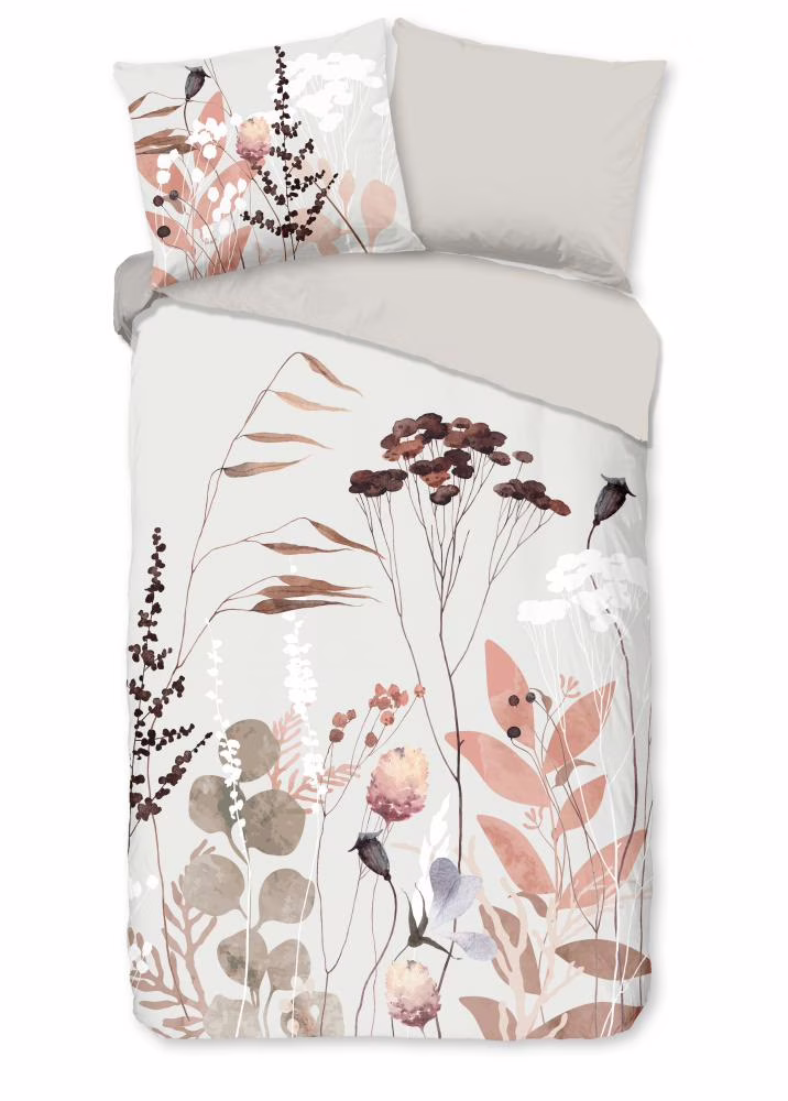 Dekbedovertrek Moya van Good Morning met bloemen en bladeren, in de kleur grijs. Dit is gemaakt van 100% katoen. De kwaliteit is ademend, vochtabsorberend en voelt zacht en soepel aan. Dit mooie dekbedovertrek fleurt iedere slaapkamer op en is geschikt voor elk jaargetijde. Het katoenen dekbedovertrek is heerlijk koel in de zomer en geeft warmte in de winter.