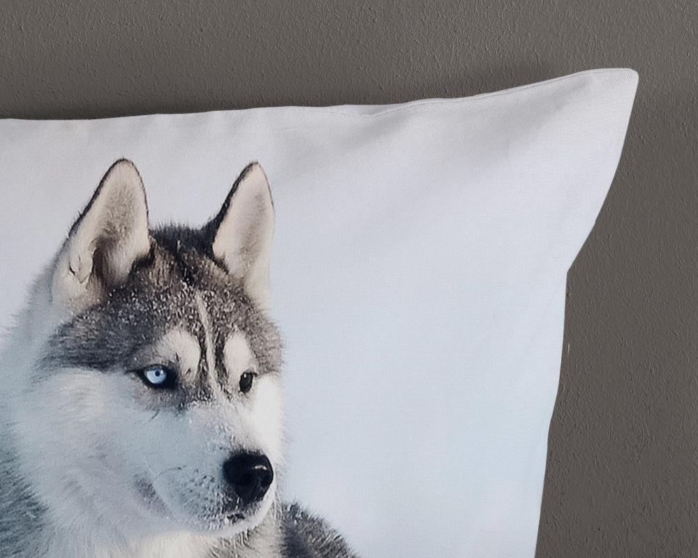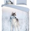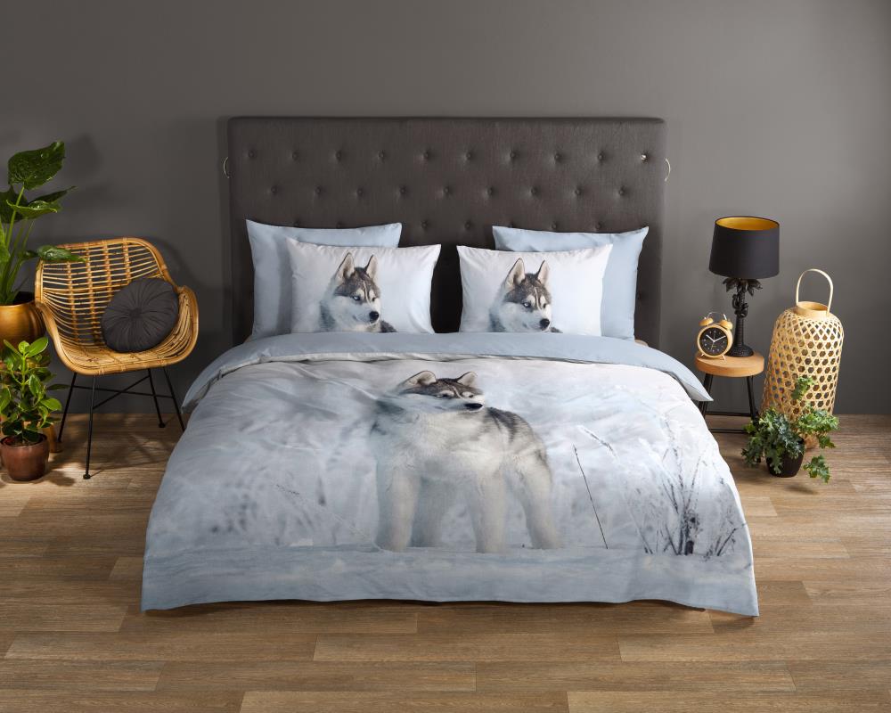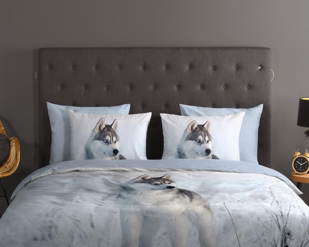 Dekbedovertrek Sachar van Good Morning met husky hond, in de kleur blauw. Dit is gemaakt van 100% katoen. De kwaliteit is ademend, vochtabsorberend en voelt zacht en soepel aan. Dit mooie dekbedovertrek fleurt iedere slaapkamer op en is geschikt voor elk jaargetijde. Het katoenen dekbedovertrek is heerlijk koel in de zomer en geeft warmte in de winter.