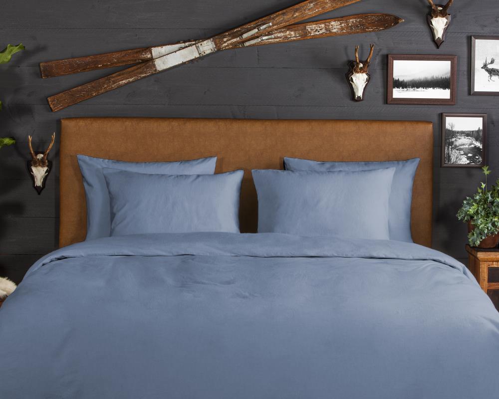 Flanellen dekbedovertrek Uni van Good Morning, in de kleur blauw, met een print van eenEffen kleur. Het dekbedovertrek is gemaakt van 100% katoen/flanel dat is licht geruwd, waardoor een fluweelzacht laagje ontstaat dat heerlijk warm aanvoelt -perfect voor koude nachten.