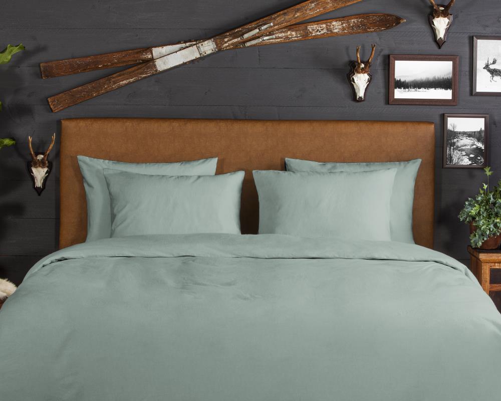 Flanellen dekbedovertrek Uni van Good Morning, in de kleur groen, met een print van eenEffen kleur. Het dekbedovertrek is gemaakt van 100% katoen/flanel dat is licht geruwd, waardoor een fluweelzacht laagje ontstaat dat heerlijk warm aanvoelt -perfect voor koude nachten.