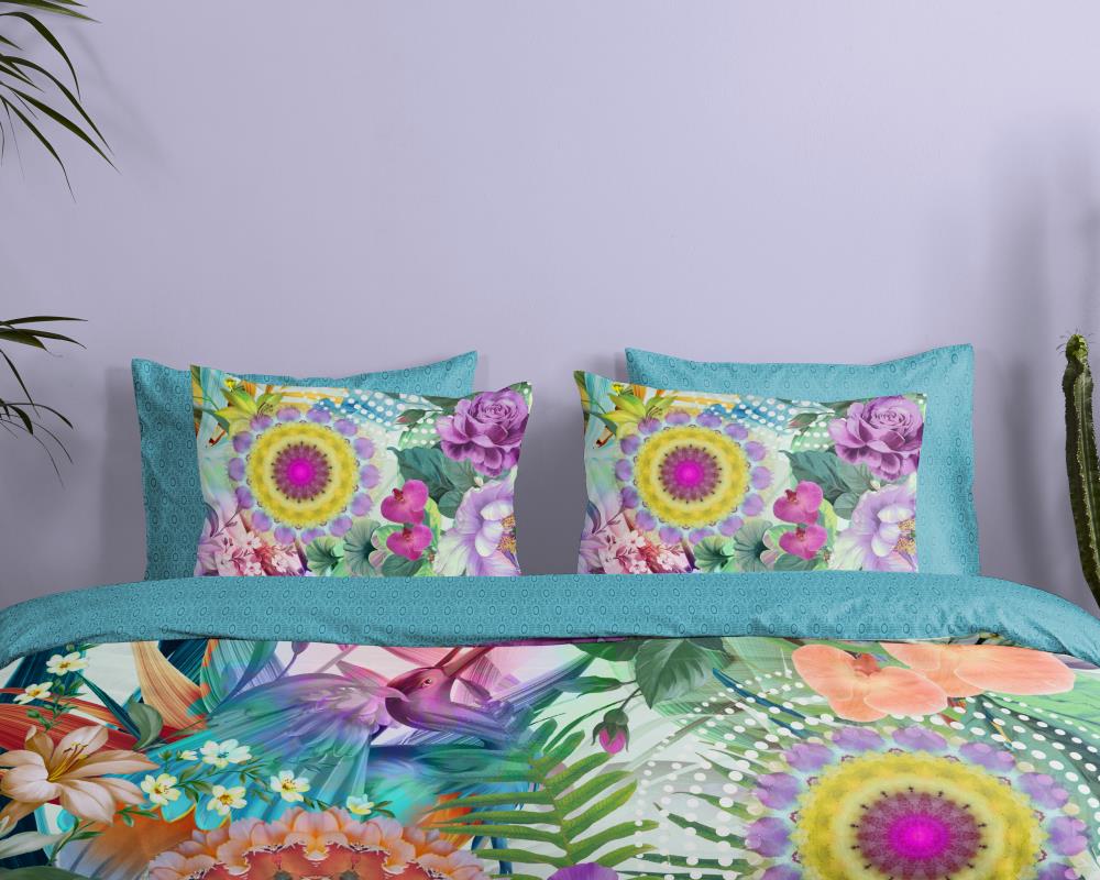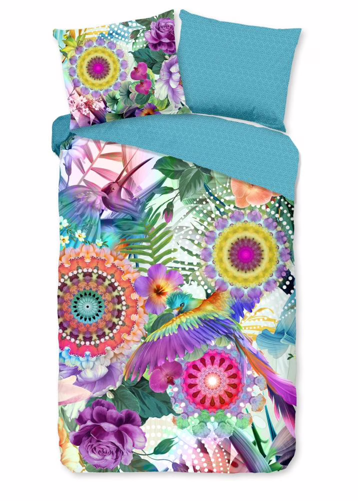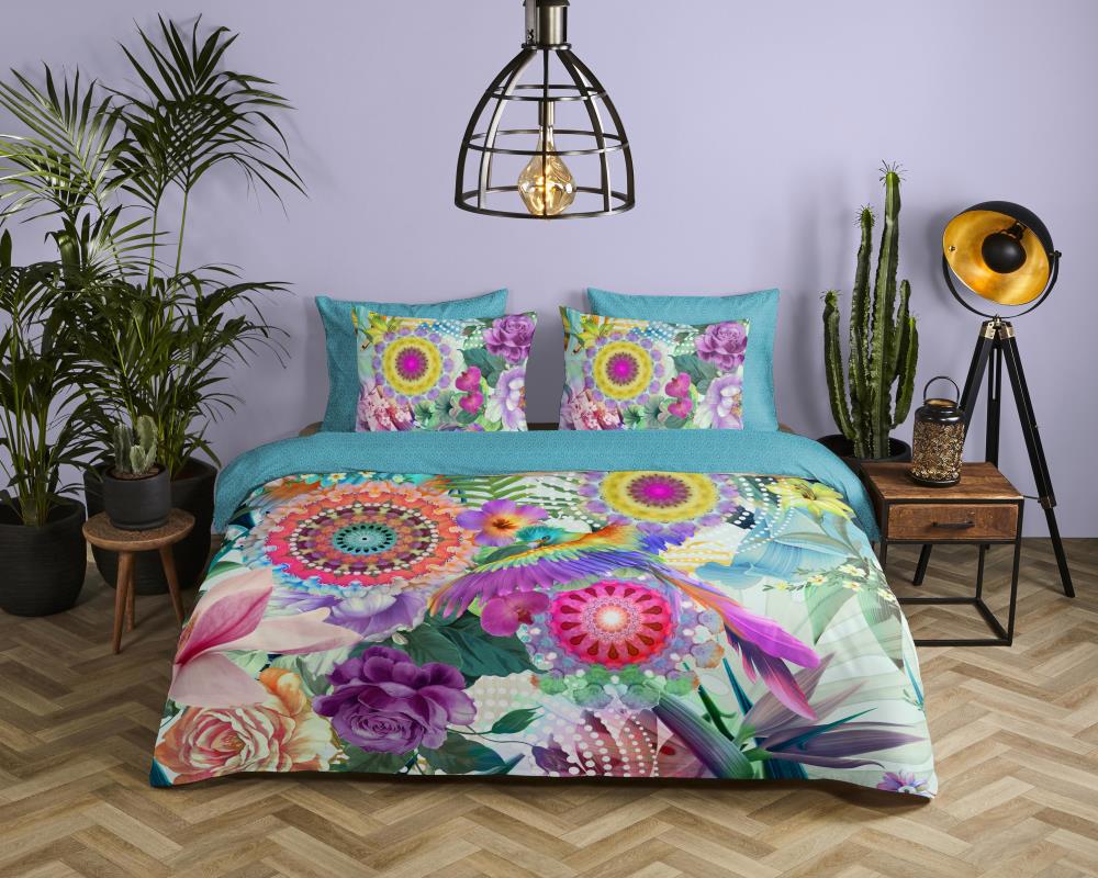 Satijnen dekbedovertrek aviva van HIP. Dit luxe dekbedovertrek met mandala's, bloemen en vogels, in de kleur multi, is een dekbedovertrek dat opvalt. Een HIP dekbedovertrek is kleurrijk en uniek! Aan de achterkant van het dekbedovertrek zit altijd een leuke, bijpassende print. Een dekbedovertrek van HIP fleurt iedere slaapkamer op!