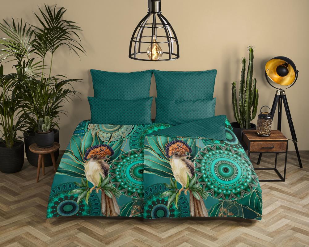 Satijnen dekbedovertrek damali van HIP. Dit luxe dekbedovertrek met mandala's, bladeren en een vogel, in de kleur multi, is een dekbedovertrek dat opvalt. Een HIP dekbedovertrek is kleurrijk en uniek! Aan de achterkant van het dekbedovertrek zit altijd een leuke, bijpassende print. Een dekbedovertrek van HIP fleurt iedere slaapkamer op!