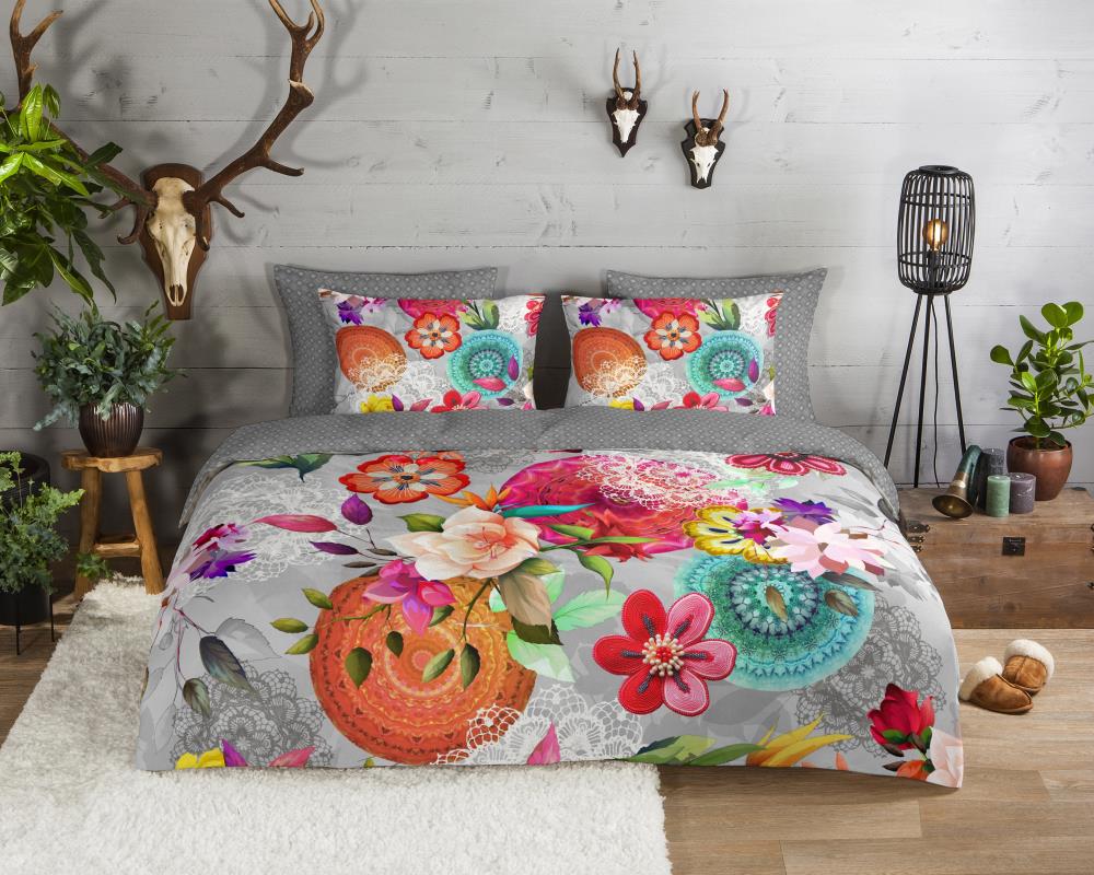 Flanellen dekbedovertrek isarea van HIP. Dit opvallende dekbedovertrek met mandals en bloemen, in de kleur multi, is gemaakt van 100% katoen-flanel. Een HIP dekbedovertrek is kleurrijk en uniek! Aan de achterkant van het dekbedovertrek zit altijd een leuke, bijpassende print. Een dekbedovertrek van HIP fleurt iedere slaapkamer op!