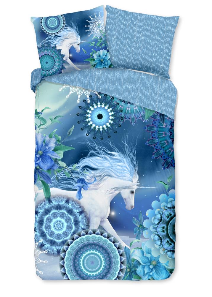 Flanellen dekbedovertrek lumi van HIP. Dit opvallende dekbedovertrek met mandala's en eenhoorn, in de kleur blauw, is gemaakt van 100% katoen-flanel. Een HIP dekbedovertrek is kleurrijk en uniek! Aan de achterkant van het dekbedovertrek zit altijd een leuke, bijpassende print. Een dekbedovertrek van HIP fleurt iedere slaapkamer op!