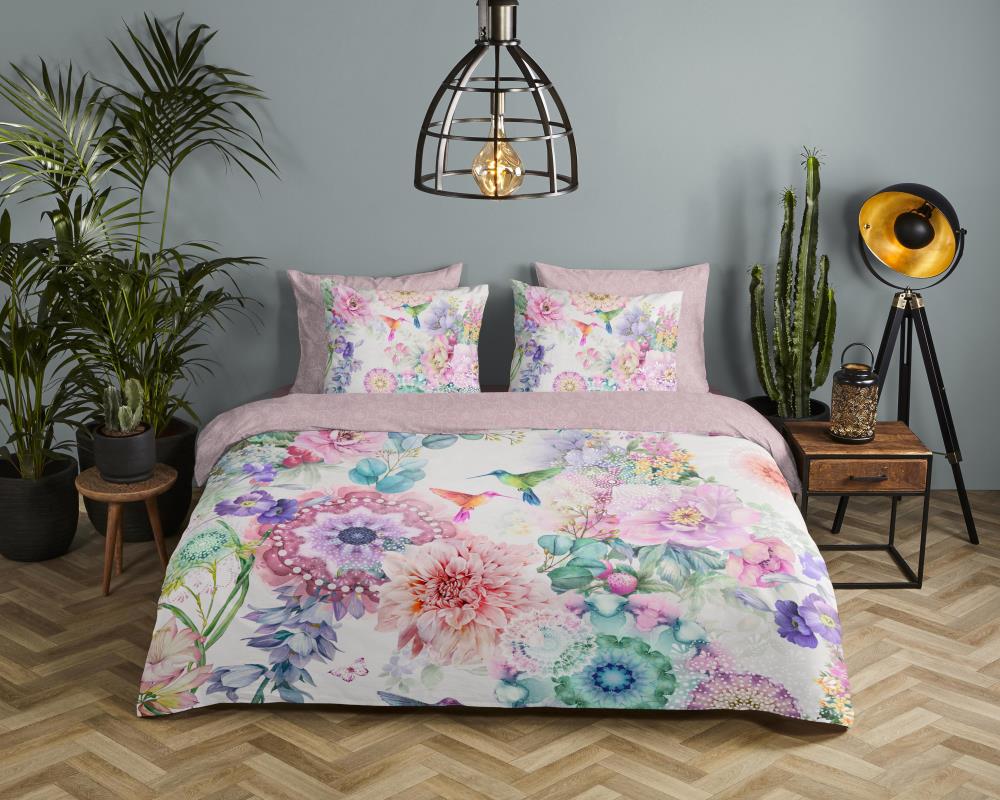 Satijnen dekbedovertrek isaye van HIP. Dit luxe dekbedovertrek met mandala's en bloemen, in de kleur multi, is een dekbedovertrek dat opvalt. Een HIP dekbedovertrek is kleurrijk en uniek! Aan de achterkant van het dekbedovertrek zit altijd een leuke, bijpassende print. Een dekbedovertrek van HIP fleurt iedere slaapkamer op!