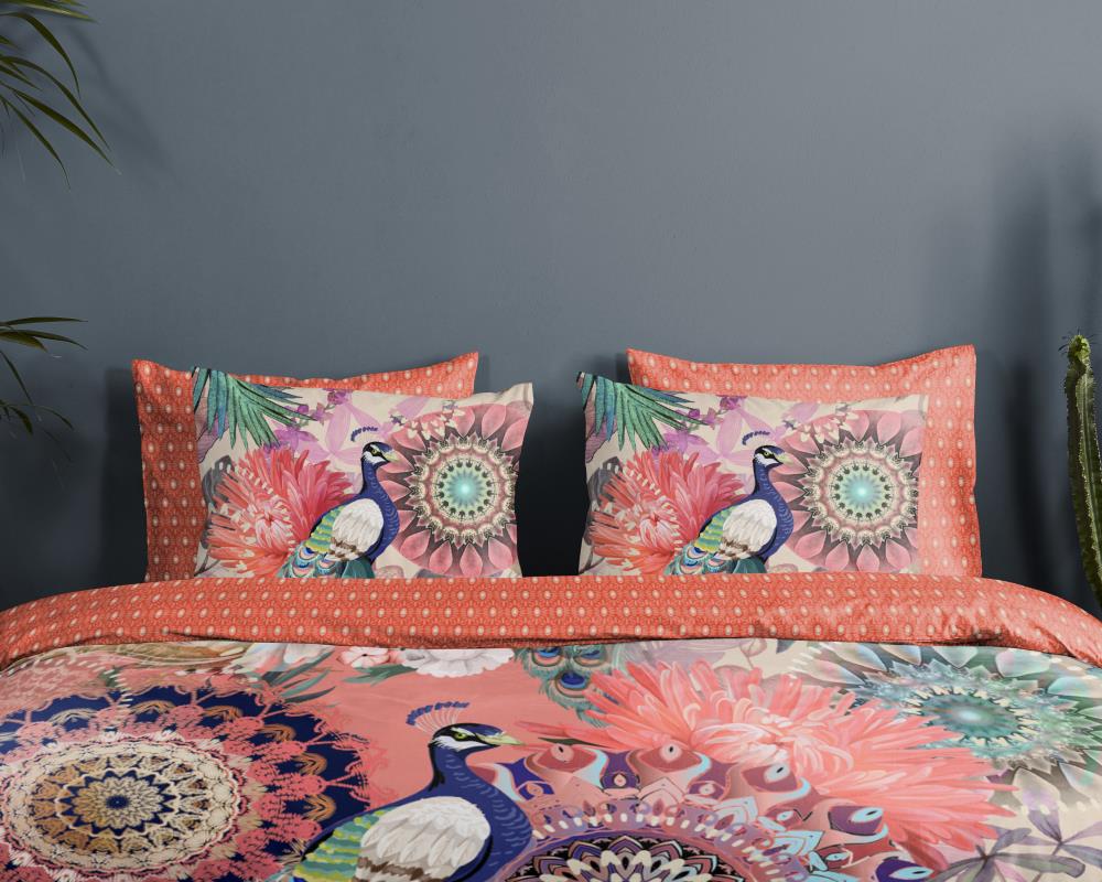 Satijnen dekbedovertrek lynouk van HIP. Dit luxe dekbedovertrek met mandala's en een pauw, in de kleur multi, is een dekbedovertrek dat opvalt. Een HIP dekbedovertrek is kleurrijk en uniek! Aan de achterkant van het dekbedovertrek zit altijd een leuke, bijpassende print. Een dekbedovertrek van HIP fleurt iedere slaapkamer op!