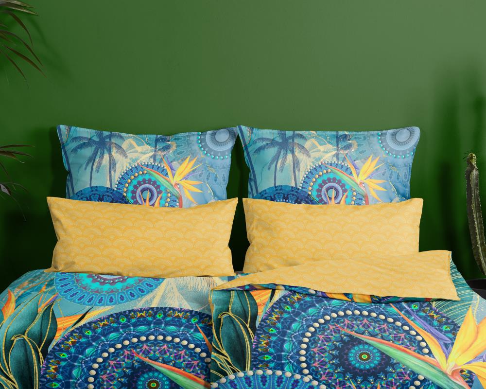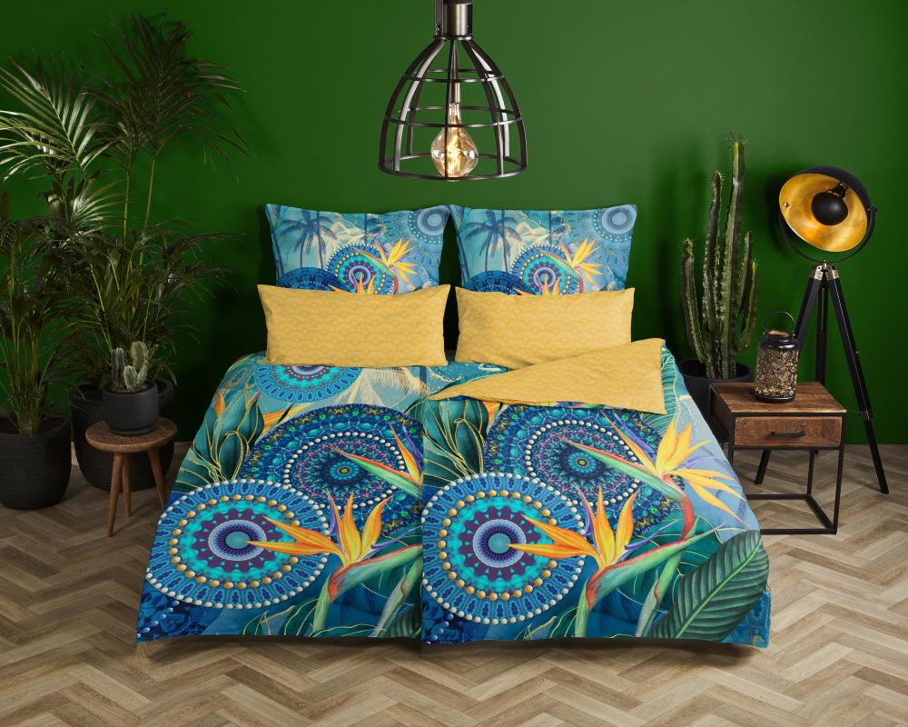 Satijnen dekbedovertrek novia van HIP. Dit luxe dekbedovertrek met mandal's en strelitzia bloemen, in de kleur multi, is een dekbedovertrek dat opvalt. Een HIP dekbedovertrek is kleurrijk en uniek! Aan de achterkant van het dekbedovertrek zit altijd een leuke, bijpassende print. Een dekbedovertrek van HIP fleurt iedere slaapkamer op!