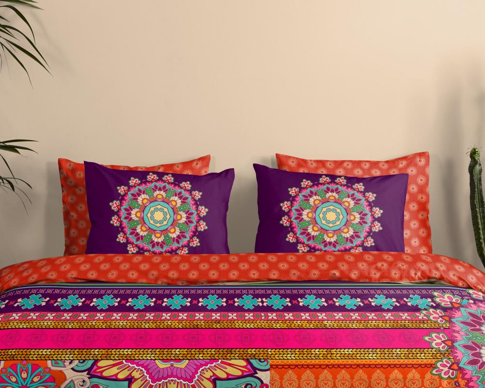 Satijnen dekbedovertrek Sherhia van HIP. Dit luxe dekbedovertrek met kleurrijke mandalas, in de kleur multi, is een dekbedovertrek dat opvalt. Een HIP dekbedovertrek is kleurrijk en uniek! Aan de achterkant van het dekbedovertrek zit altijd een leuke, bijpassende print. Een dekbedovertrek van HIP fleurt iedere slaapkamer op!