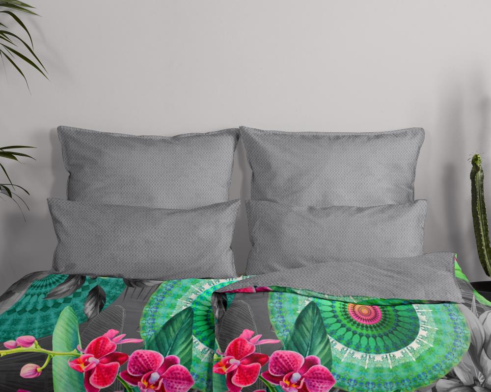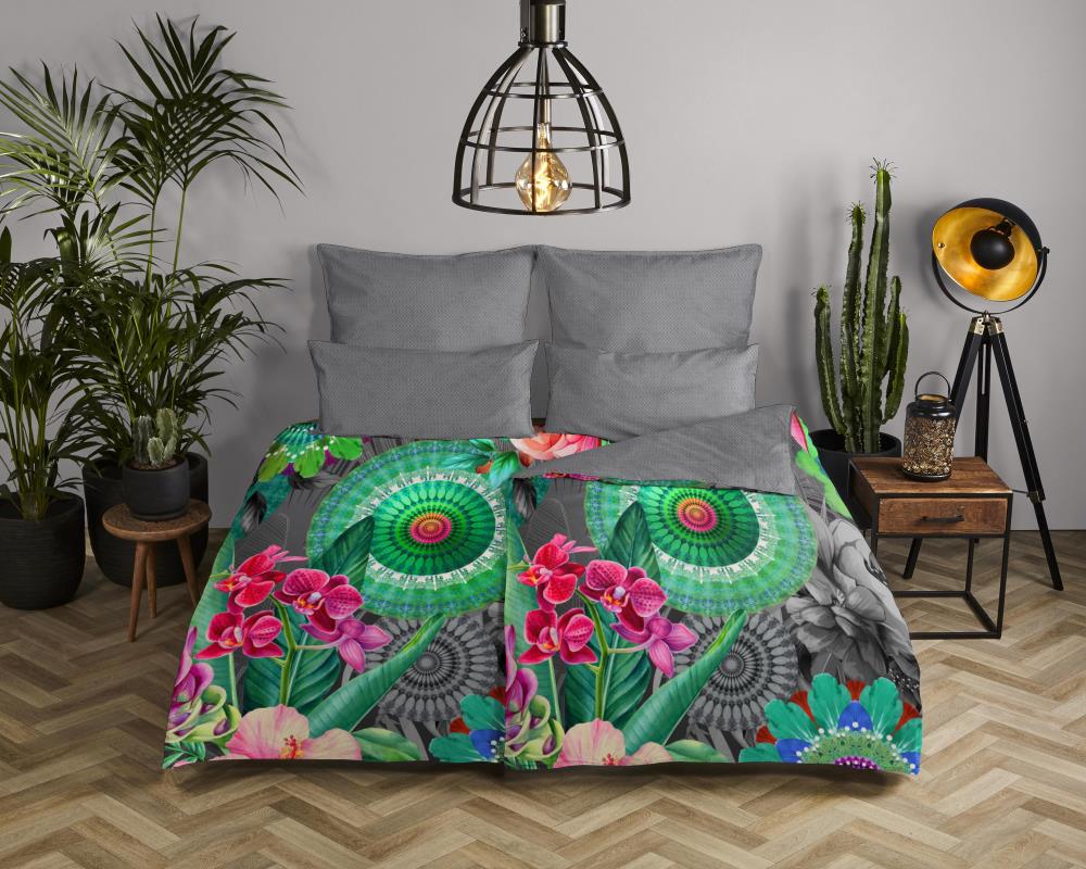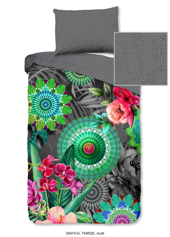 Satijnen dekbedovertrek thirze van HIP. Dit luxe dekbedovertrek met mandala's en bloemen, in de kleur multi, is een dekbedovertrek dat opvalt. Een HIP dekbedovertrek is kleurrijk en uniek! Aan de achterkant van het dekbedovertrek zit altijd een leuke, bijpassende print. Een dekbedovertrek van HIP fleurt iedere slaapkamer op!