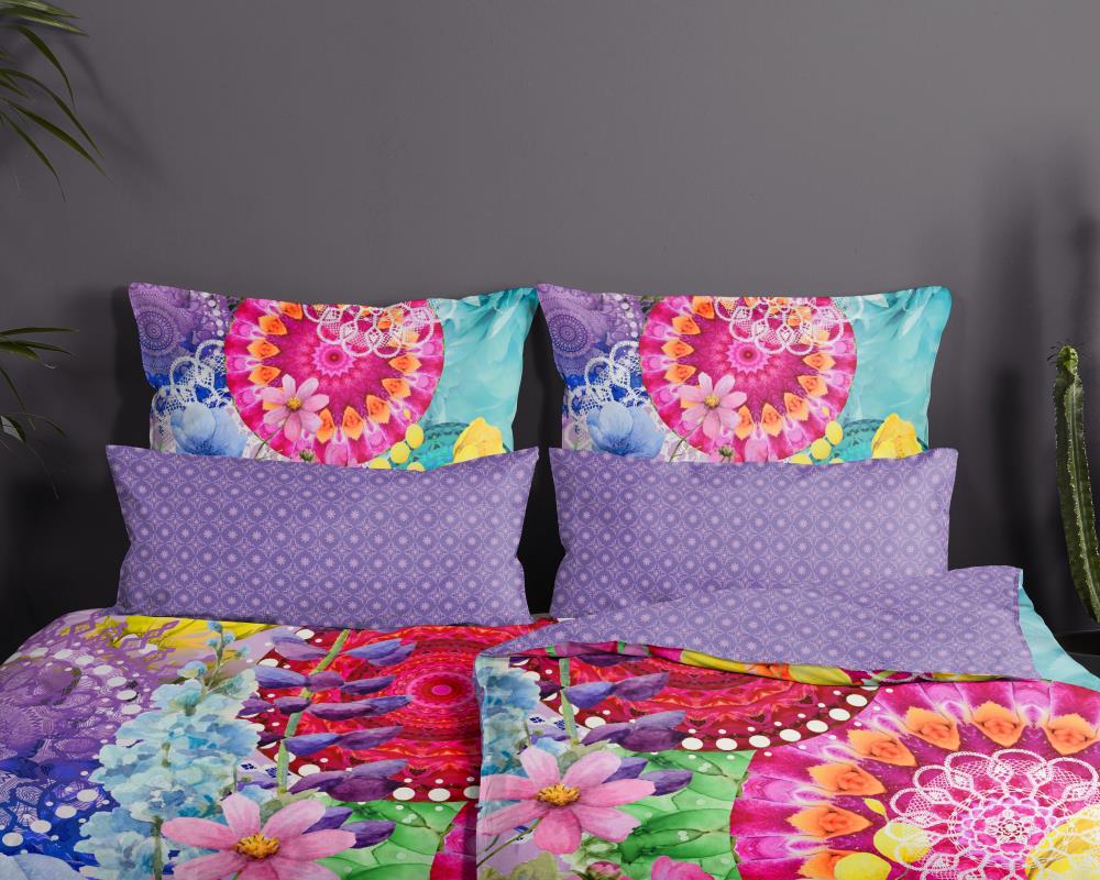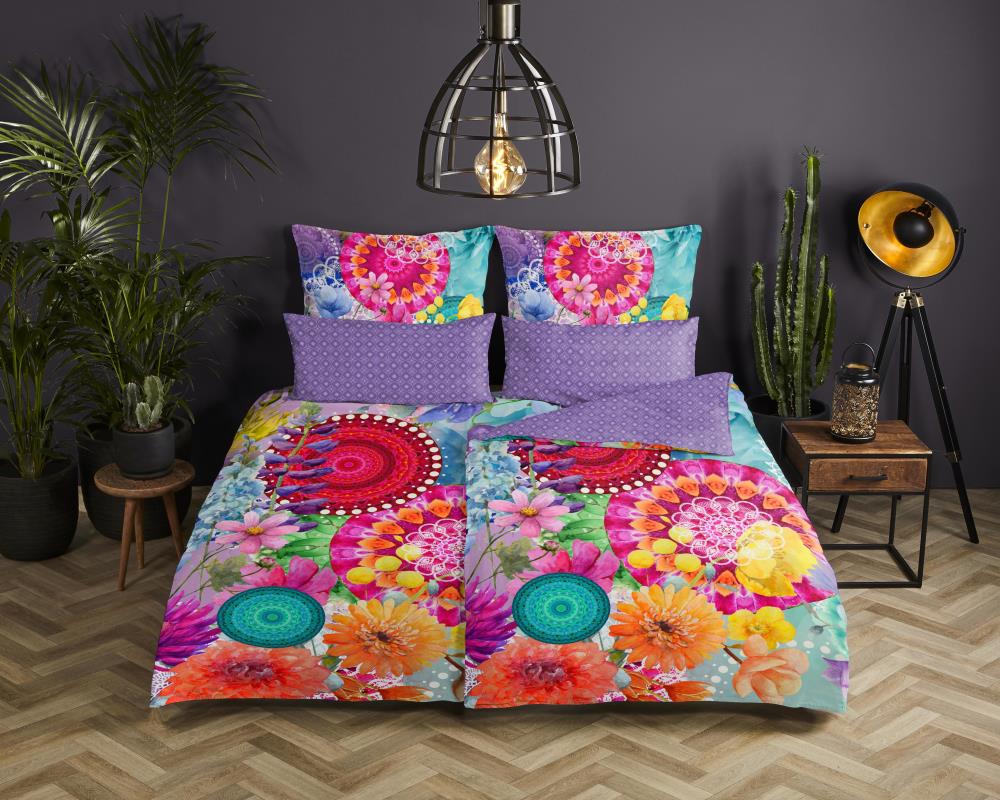 Satijnen dekbedovertrek vitori van HIP. Dit luxe dekbedovertrek met mandala's en bloemen, in de kleur multi, is een dekbedovertrek dat opvalt. Een HIP dekbedovertrek is kleurrijk en uniek! Aan de achterkant van het dekbedovertrek zit altijd een leuke, bijpassende print. Een dekbedovertrek van HIP fleurt iedere slaapkamer op!