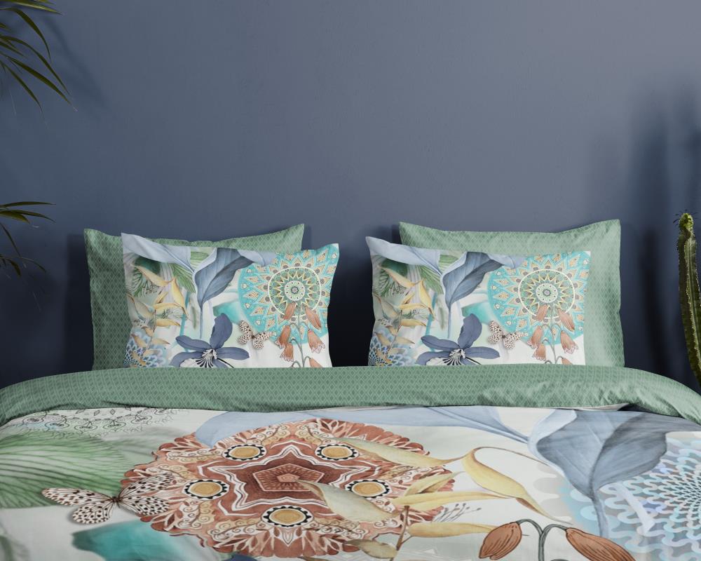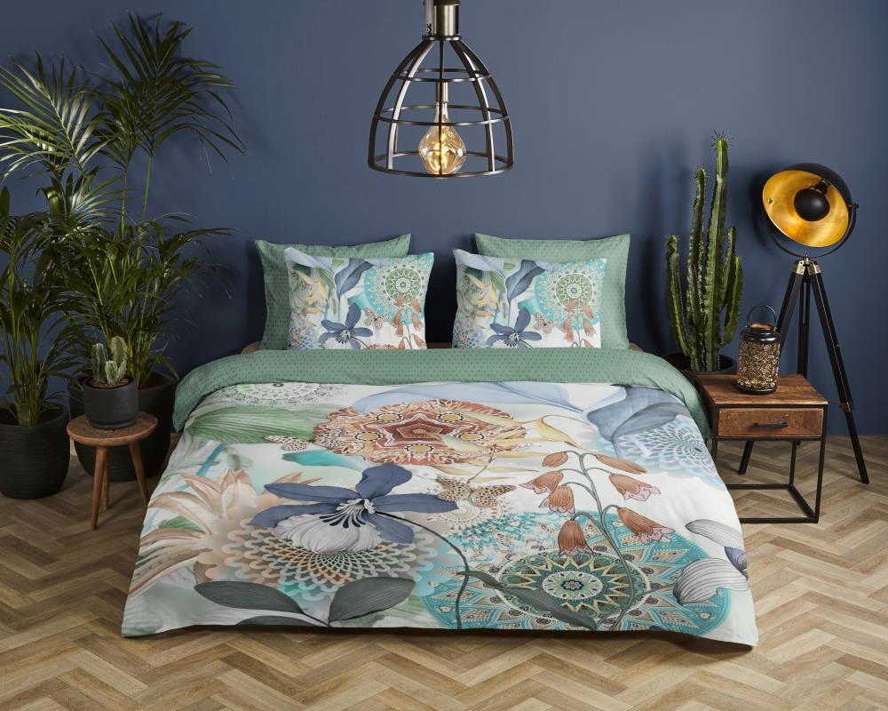 Satijnen dekbedovertrek zephir van HIP. Dit luxe dekbedovertrek met mandala's en bladeren, in de kleur multi, is een dekbedovertrek dat opvalt. Een HIP dekbedovertrek is kleurrijk en uniek! Aan de achterkant van het dekbedovertrek zit altijd een leuke, bijpassende print. Een dekbedovertrek van HIP fleurt iedere slaapkamer op!