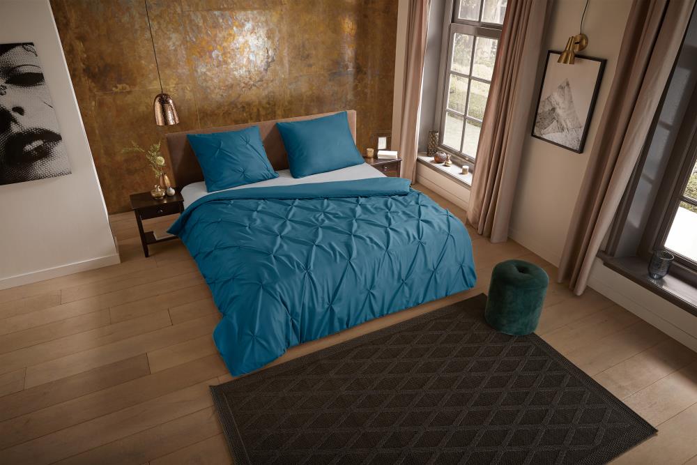 Dekbedovertrek Elegance van Pure met luxe stiksel plooien, uitgevoerd in de kleur petrol is vervaardigd van 100% polyester -microfiber. Deze stof valt soepel om je heen en is licht van gewicht, wat het comfortabel maakt voor elk seizoen. Dit dekbedovertrek is voorzien van luxe stiksels waardoor er stijlvolle/ elegante plooien ontstaan.