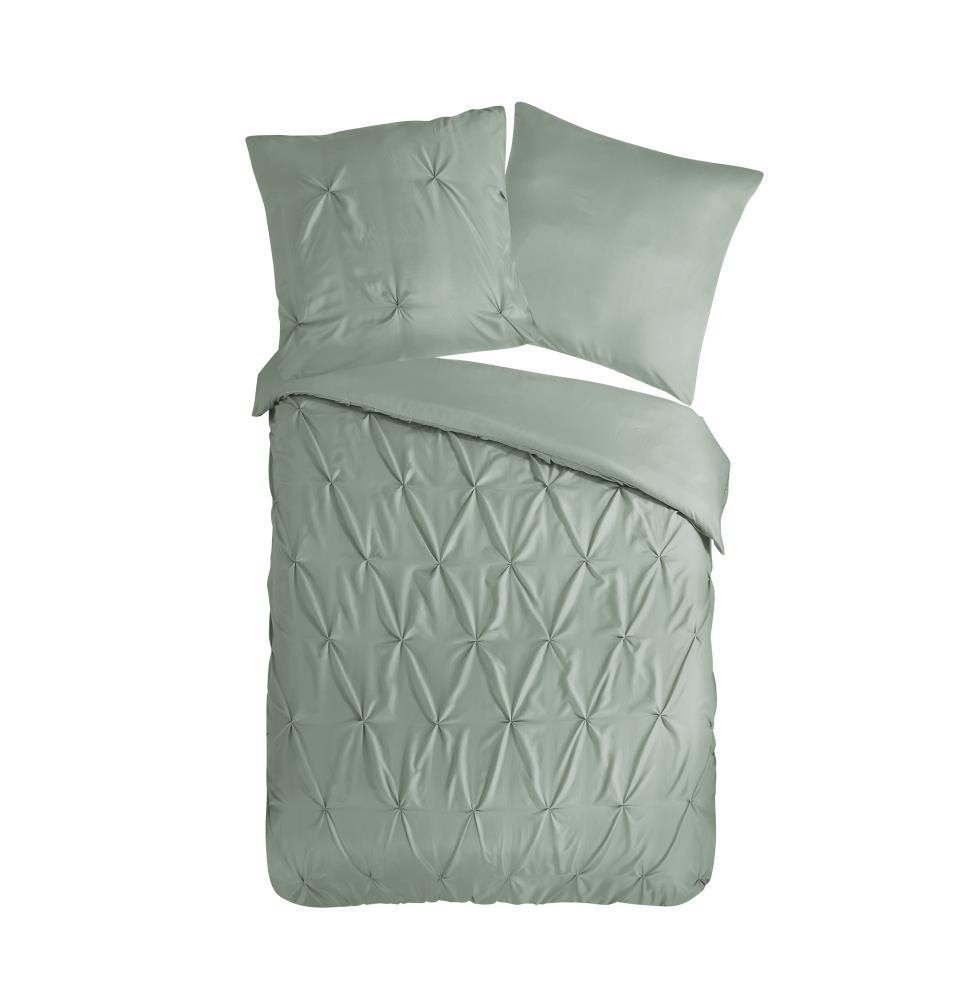 Dekbedovertrek Elegance van Pure met luxe stiksel plooien, in de kleur lichtsalie is gemaakt van 100% polyester -microfiber. Deze stof valt soepel om je heen en is licht van gewicht, wat het comfortabel maakt voor elk seizoen.