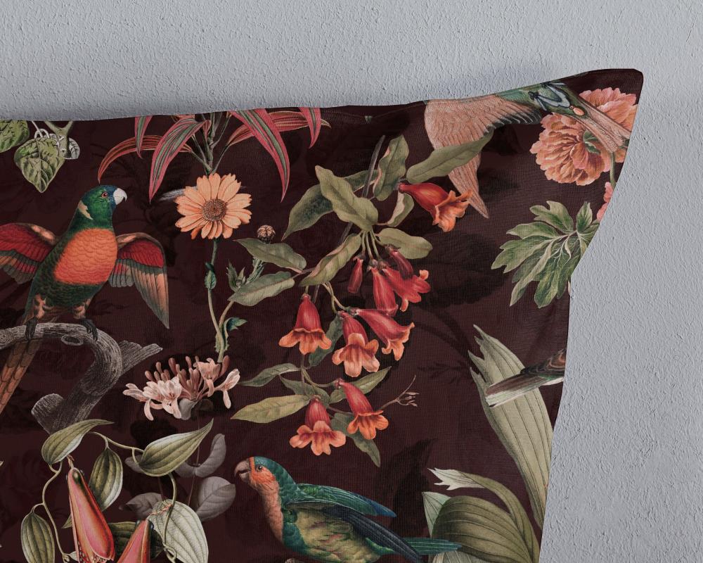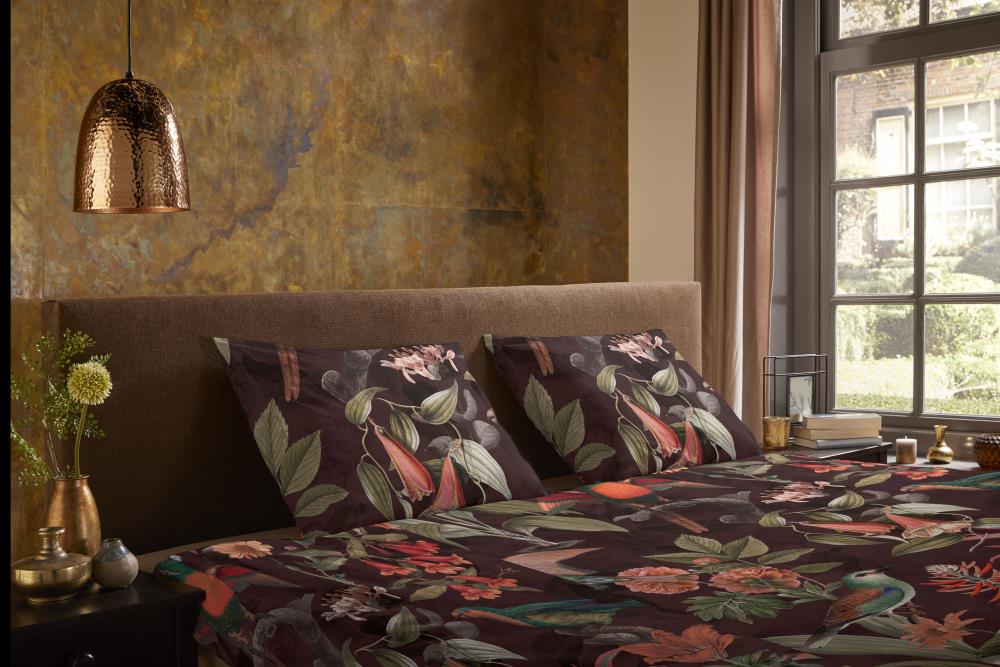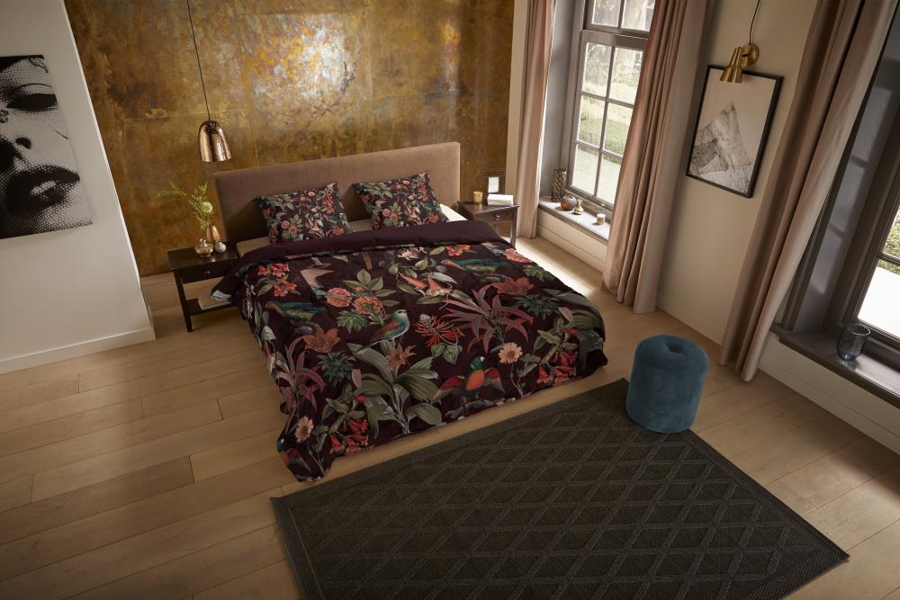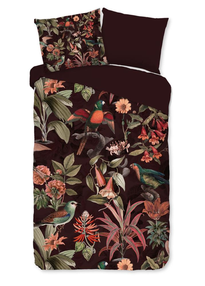 Dekbedovertrek Elmira van Pure met jungle met bladeren en dieren, in de kleur bordeaux is gemaakt van 100% polyester -microfiber. Deze stof valt soepel om je heen en is licht van gewicht, wat het comfortabel maakt voor elk seizoen.