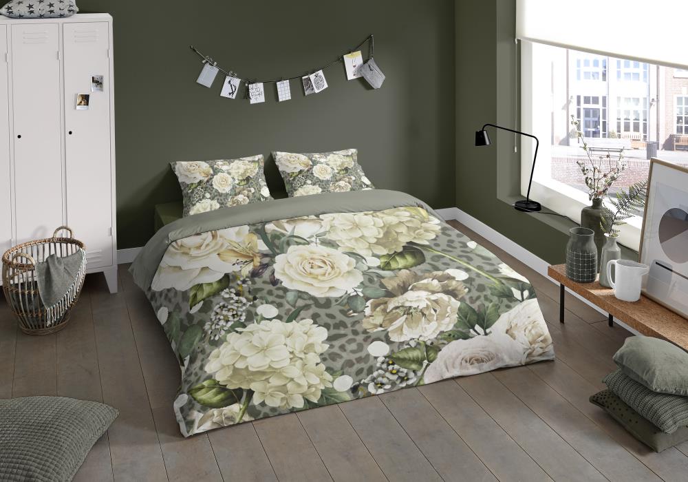 Dekbedovertrek Joy van Pure met bloemen, in de kleur olijfgroen is gemaakt van 100% polyester -microfiber. Deze stof valt soepel om je heen en is licht van gewicht, wat het comfortabel maakt voor elk seizoen.