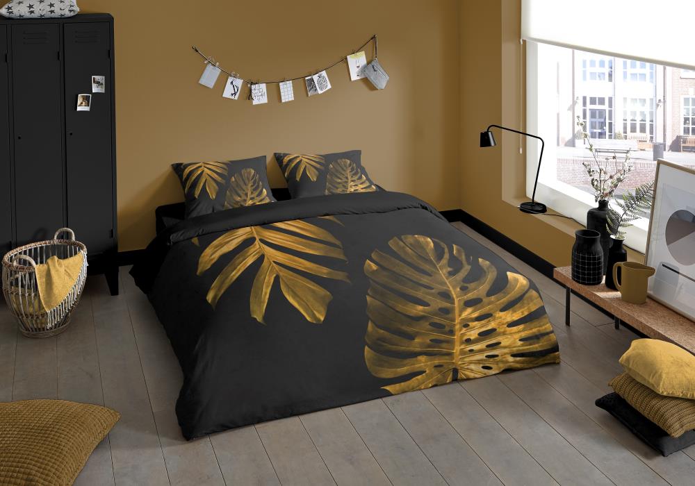 Dekbedovertrek Kimberly van Pure met gouden bladeren, in de kleur zwart is gemaakt van 100% polyester -microfiber. Deze stof valt soepel om je heen en is licht van gewicht, wat het comfortabel maakt voor elk seizoen.