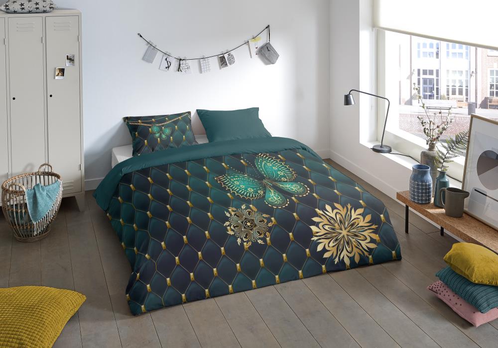 Dekbedovertrek Lavanya van Pure met vlinder, in de kleur petrol is gemaakt van 100% polyester -microfiber. Deze stof valt soepel om je heen en is licht van gewicht, wat het comfortabel maakt voor elk seizoen.