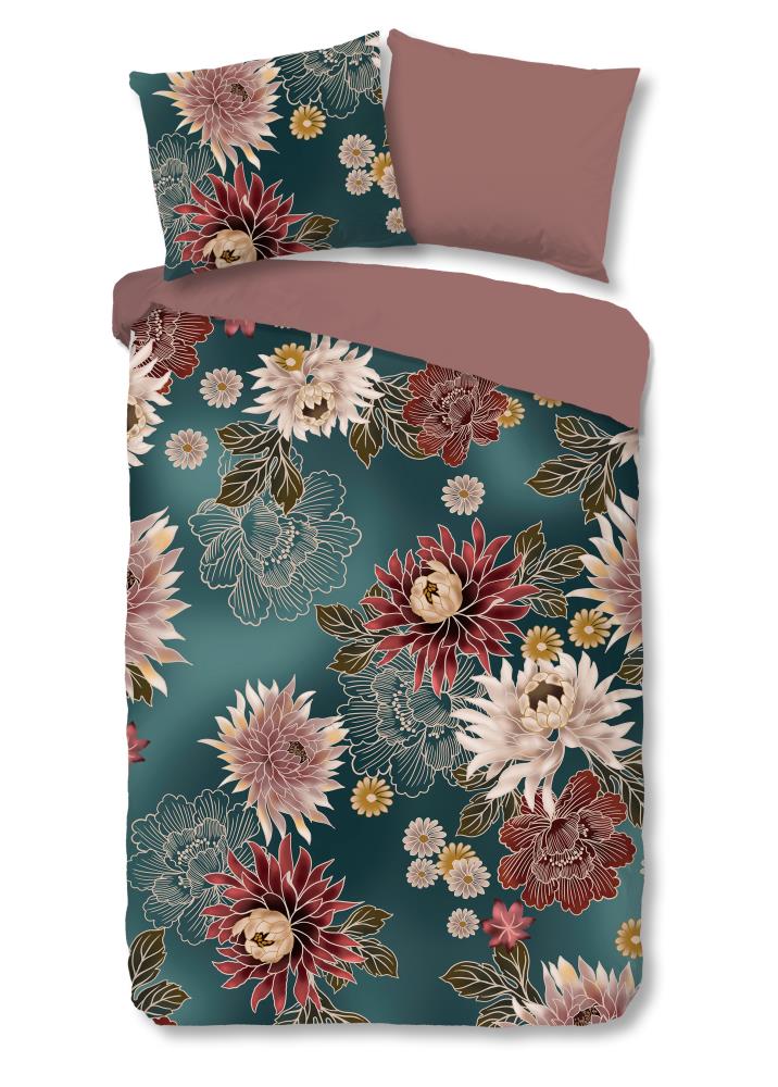 Dekbedovertrek May van Pure met bloemen, in de kleur petrol is gemaakt van 100% polyester -microfiber. Deze stof valt soepel om je heen en is licht van gewicht, wat het comfortabel maakt voor elk seizoen.