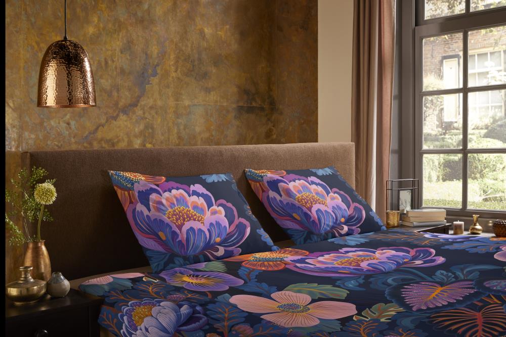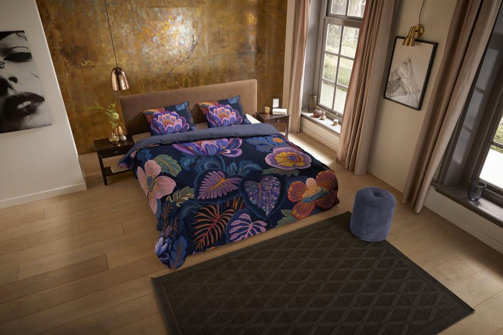 Dekbedovertrek Sharira van Pure met bloemen, in de kleur donkerblauw is gemaakt van 100% polyester -microfiber. Deze stof valt soepel om je heen en is licht van gewicht, wat het comfortabel maakt voor elk seizoen.