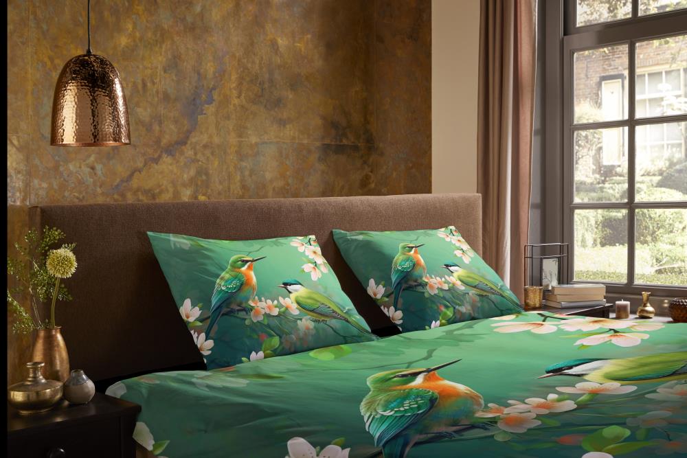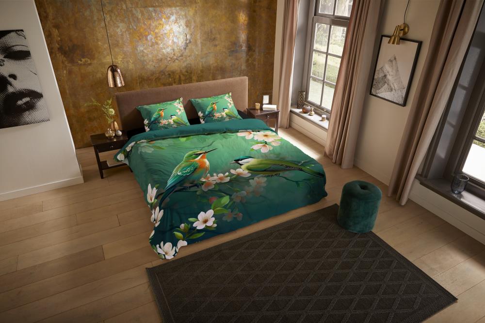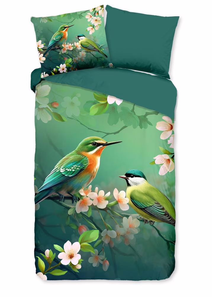 Dekbedovertrek Signi van Pure met bloemen en vogels, in de kleur groen is gemaakt van 100% polyester -microfiber. Deze stof valt soepel om je heen en is licht van gewicht, wat het comfortabel maakt voor elk seizoen.