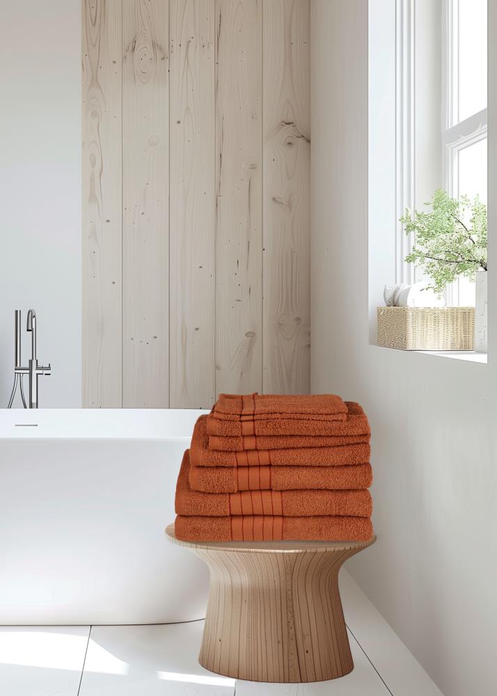 Handdoekenset van Good Morning. Deze luxe effen handdoeken zijn terra van kleur. De handdoeken zijn met luxe geweven band en brengen een rustige, stijlvolle sfeer in elke badkamer. Een perfecte finishing touch!