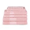 Handdoekenset van Good Morning. Deze luxe effen handdoeken zijn lichtroze van kleur. De handdoeken zijn met luxe geweven band en brengen een rustige, stijlvolle sfeer in elke badkamer. Een perfecte finishing touch!